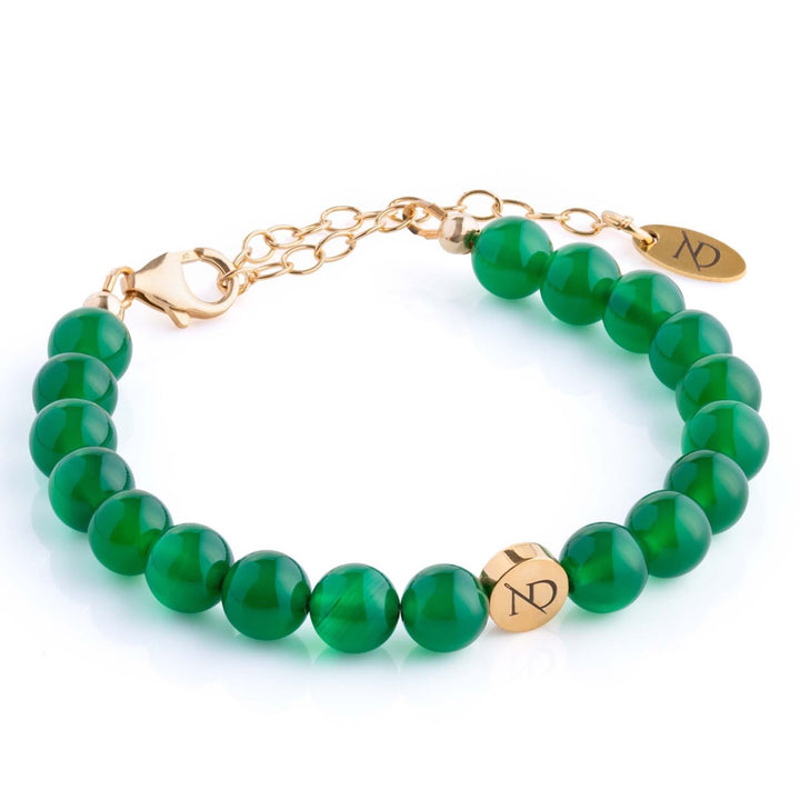 Adjustable Green Agate Gemstone Bracelet & Gold Chain