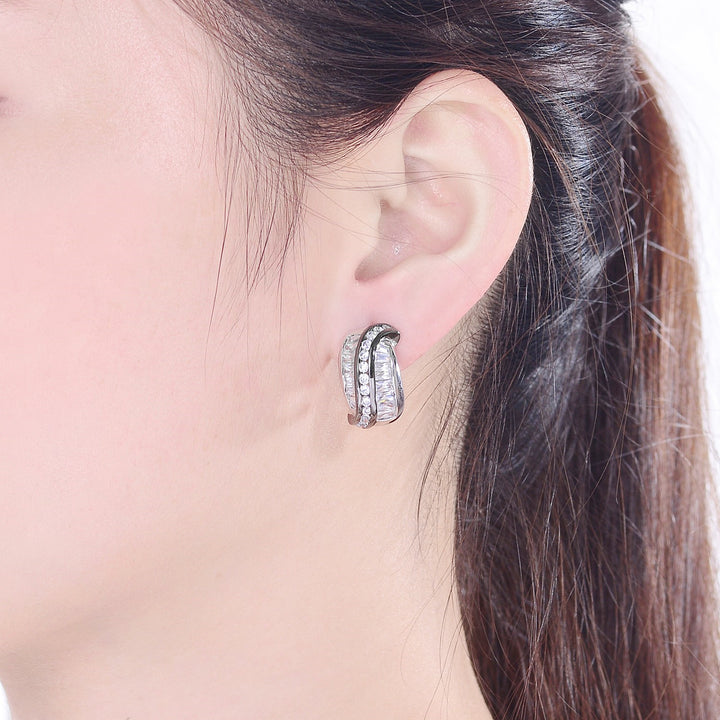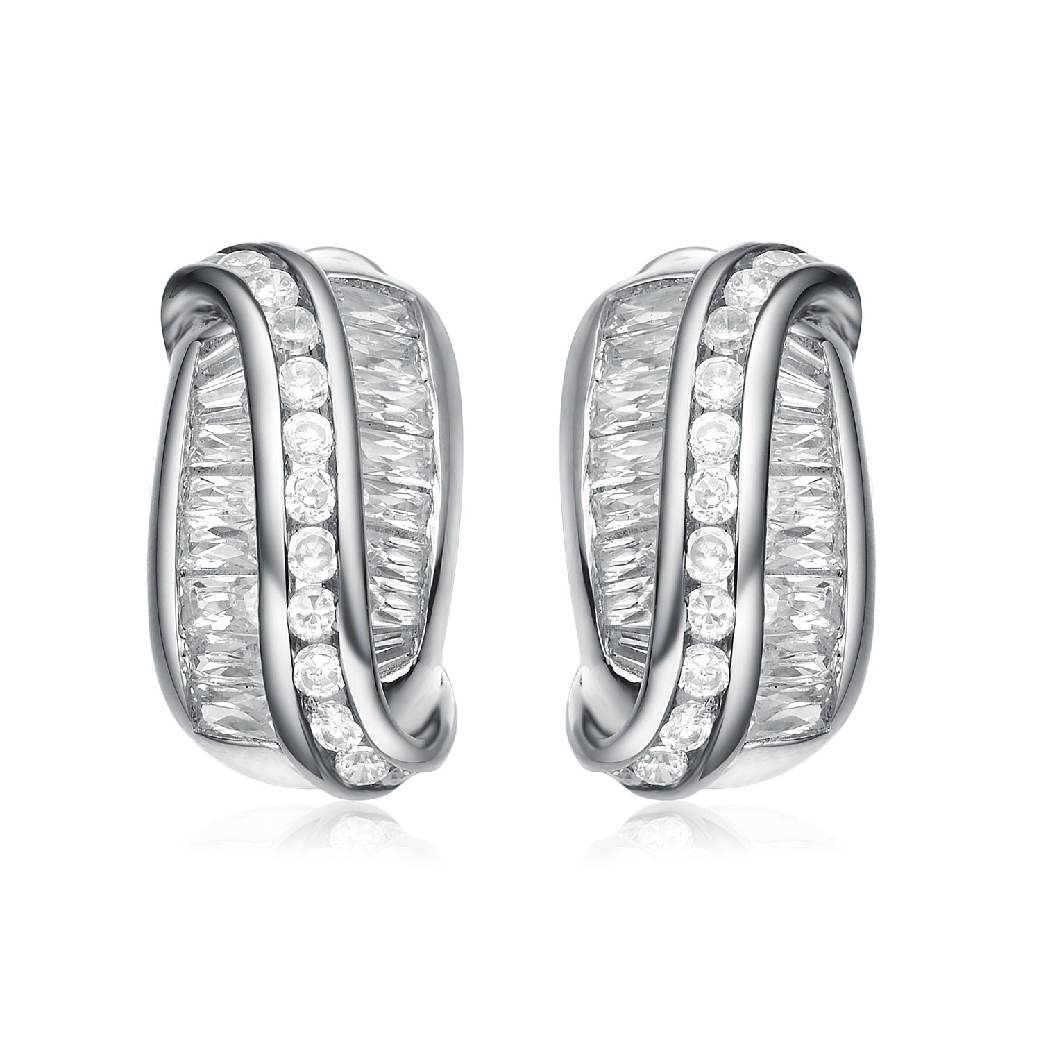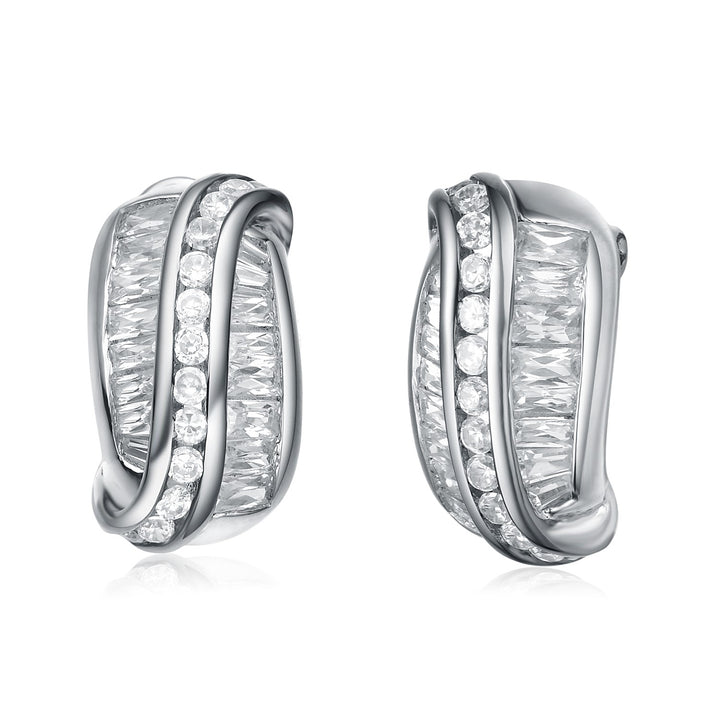 These clip-on earrings are crafted from sterling silver and feature baguette-cut and round-cut cubic zirconia stones.