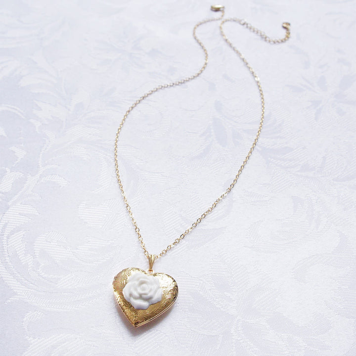 Classic Heart Locket With Porcelain Rose Pendant Necklace