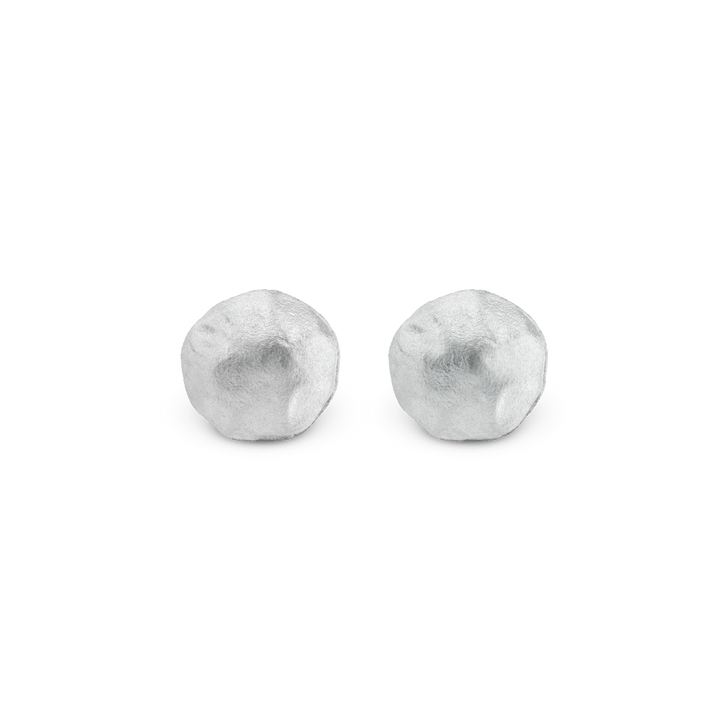 These earrings are handcrafted from pure platinum with an unconventional finish in a classic circular stud shape.