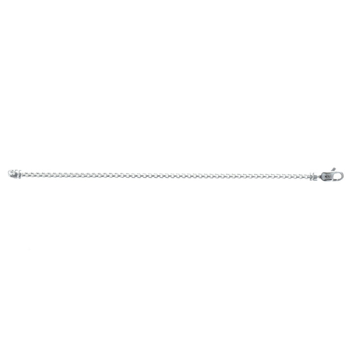 This bracelet is made from solid sterling silver and features a box chain design. It weighs approximately 15 grams.