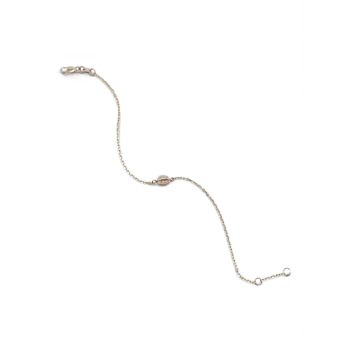 These bracelets are handcrafted from 9kt yellow gold, weighing 3.3 grams, and feature cowrie shells. They have a total length of 19cm with an 18cm adjustment ring and a height of 2.3mm.