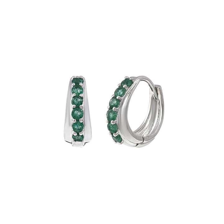 These hoops are handcrafted from sterling silver, plated with white rhodium, and weigh approximately 2.19 grams. They feature 12 Aventurine gemstones, with a total weight of 0.11 grams, and are sold as a pair.