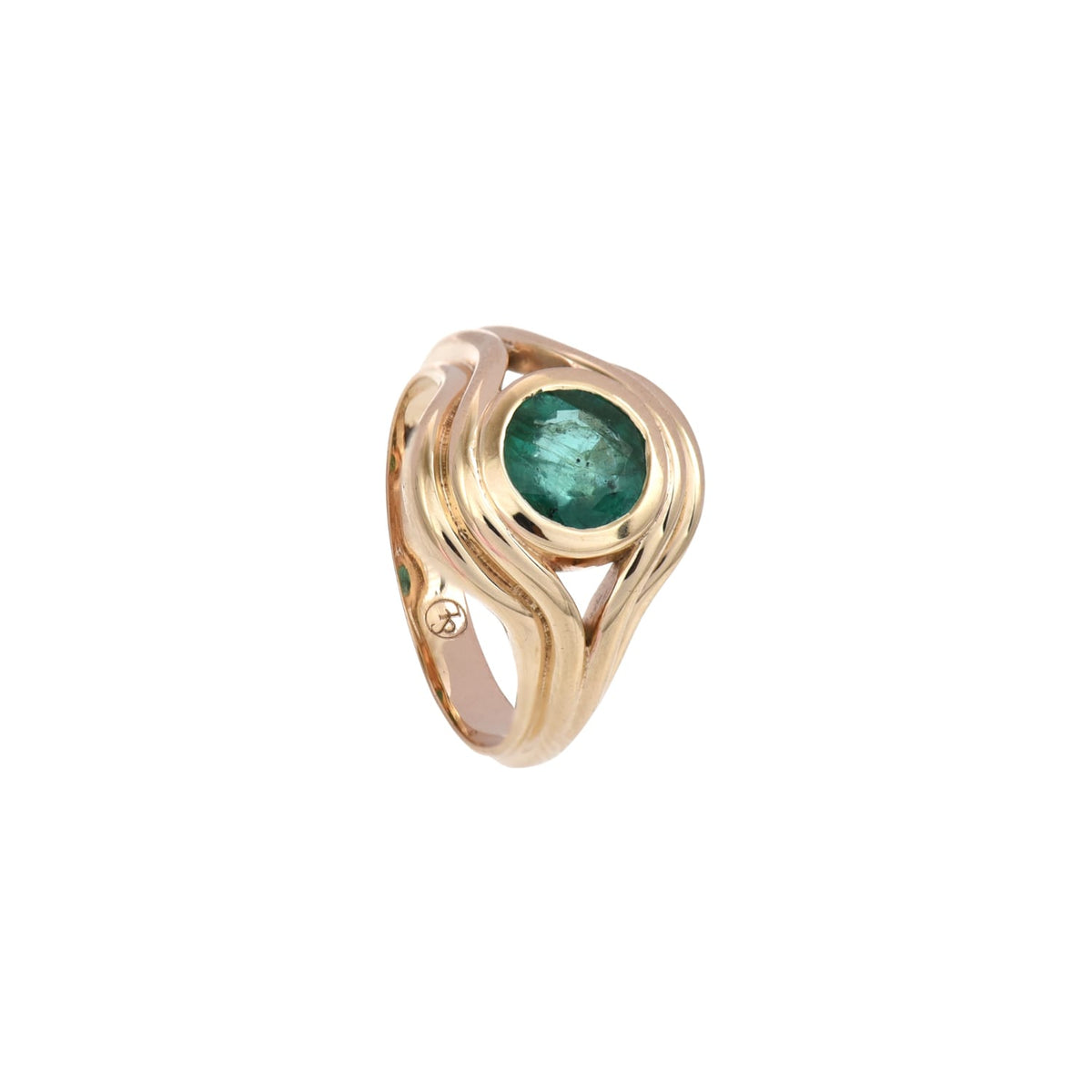 This ring is crafted from 9ct yellow gold, weighing approximately 2.94g, and features a 0.17ct emerald. It is also available in other stone options.