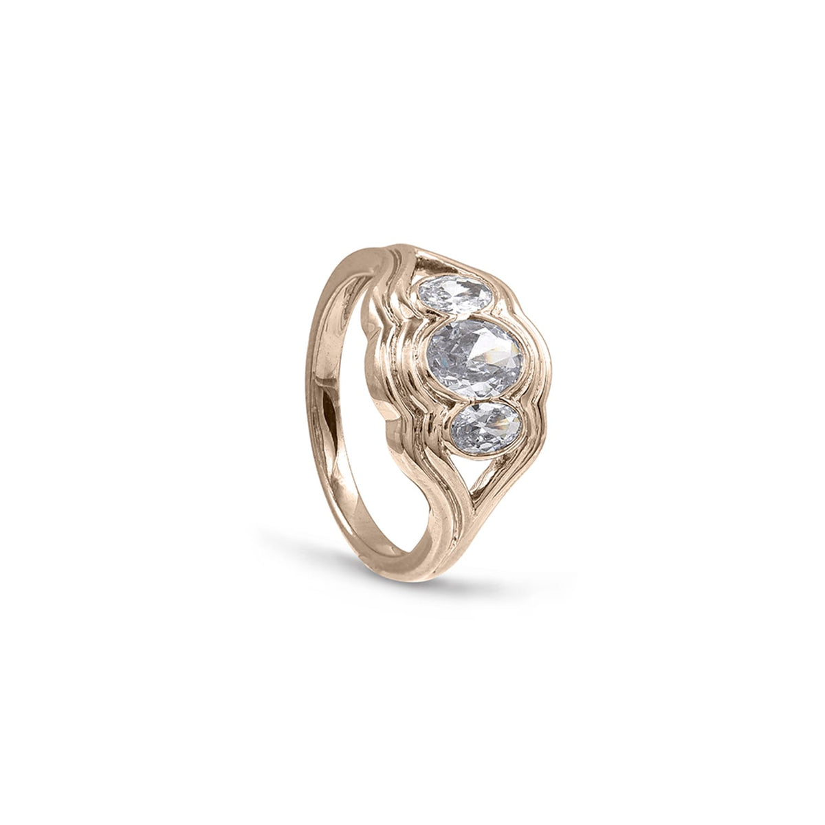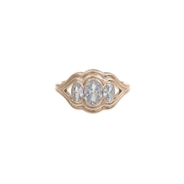 The Trio Moissanite Ring by &Lottie is a chic and elegant piece crafted with precision. This stunning ring is designed in 9kt yellow gold with parallel rails that guide the eye to the three central moissanite stones. It effortlessly combines timeless beauty with contemporary sophistication, making it a radiant accessory for any occasion.