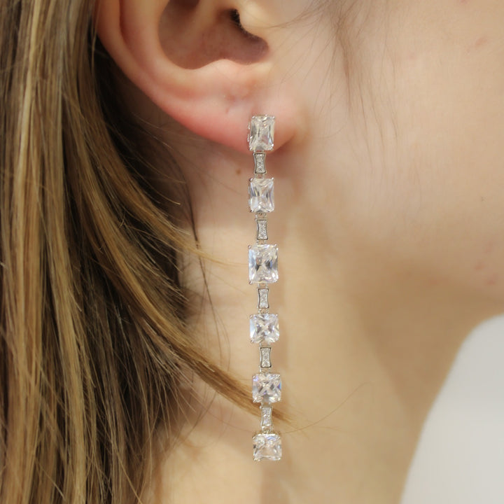 These earrings are rhodium-coated and feature Swarovski crystals. They are lightweight and handcrafted in Turkey.