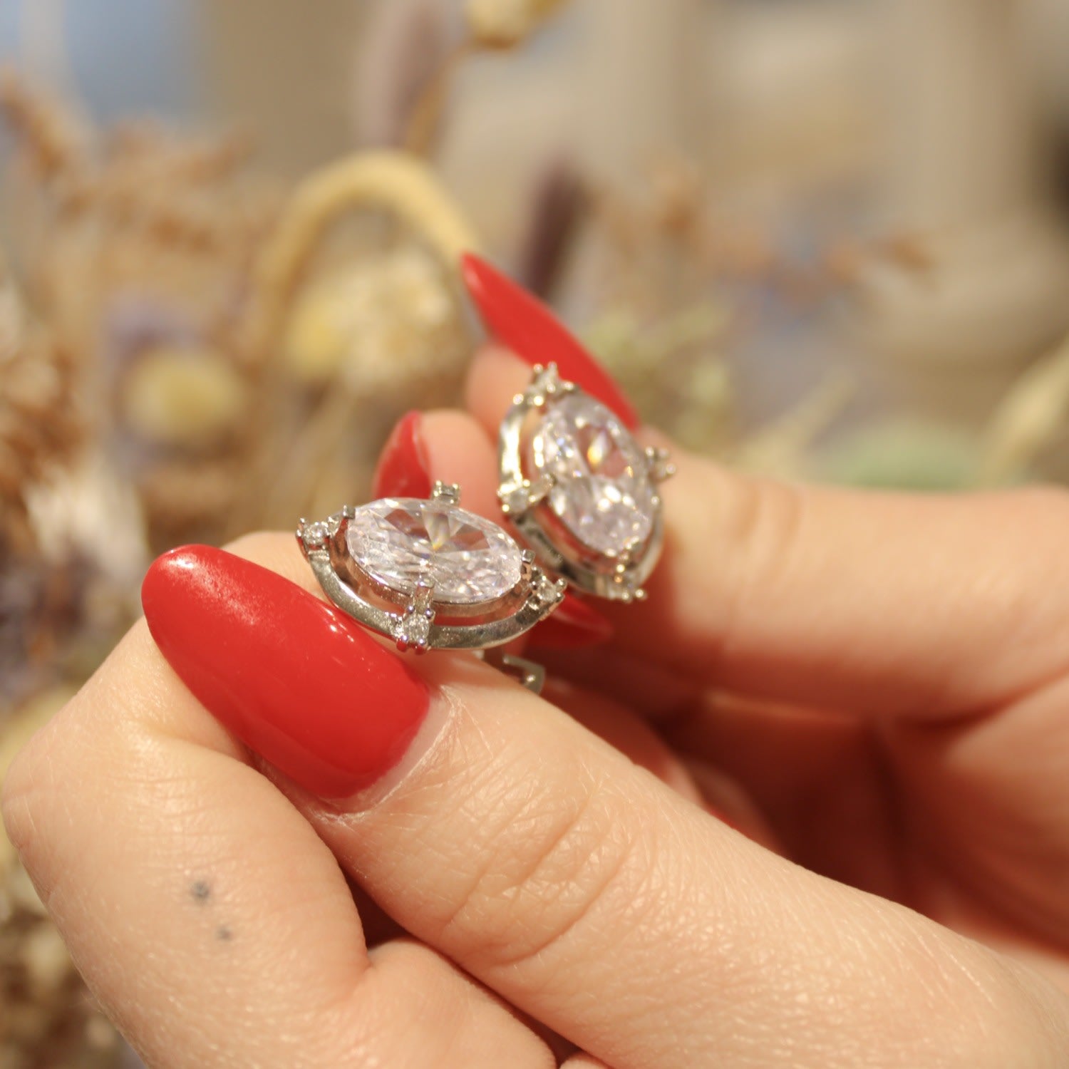 These earrings are crafted from 925 sterling silver and feature Swarovski crystals. They are hypoallergenic.