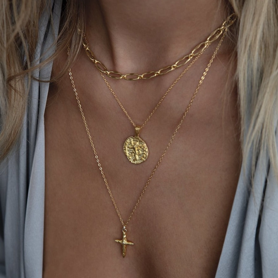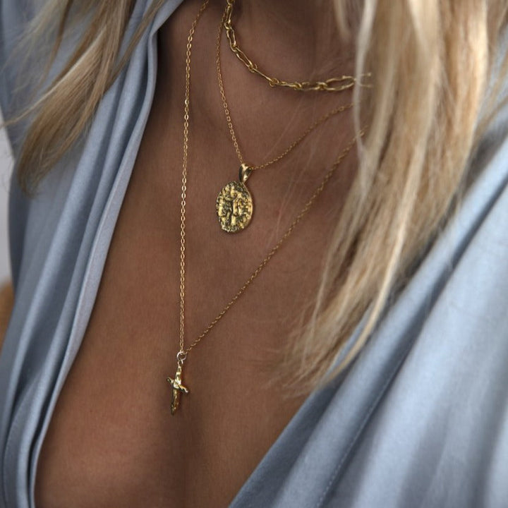 This Lion Coin Necklace - Silver by Aaria London is an ancient medallion necklace with a powerful and elegant design. Featuring a roaring lion on a delicate chain, it symbolizes strength and courage. Wear this necklace as a talisman of protection, and a reminder of the power within you. It is a timeless piece with a deep, personal meaning.