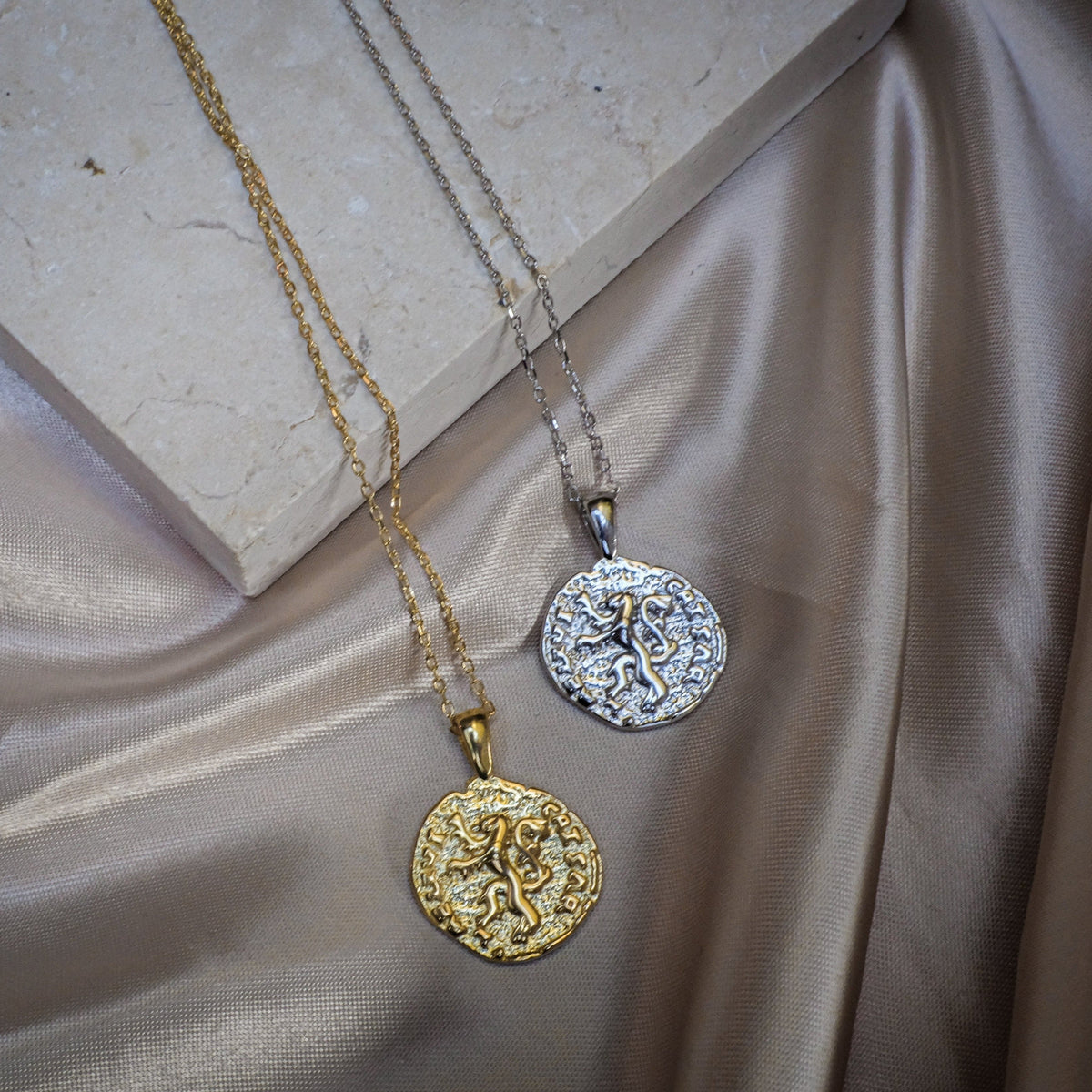Lion Coin Necklace - Silver