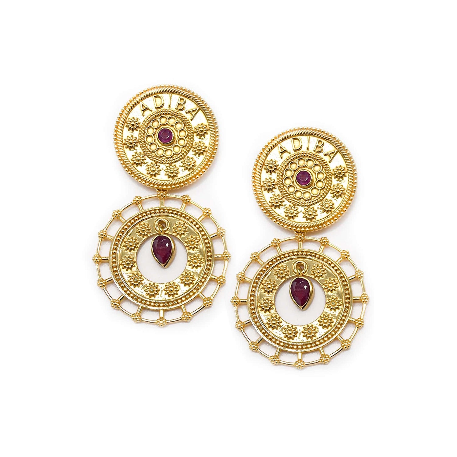 Gold Ruby Adiba Drop Earring