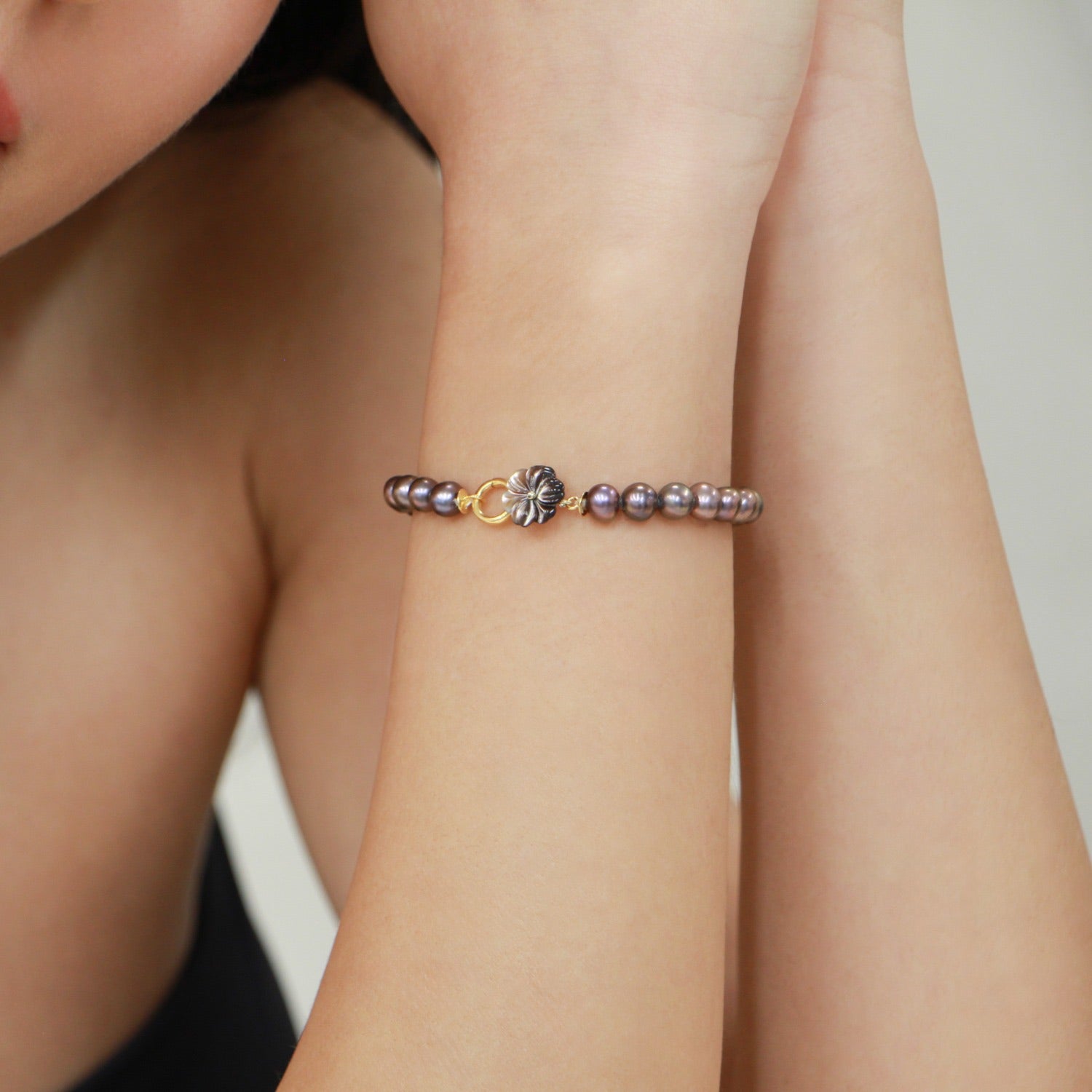 This Cleito Bracelet - Black by Alegoria Jewellery is a classic and timeless piece inspired by the mythical garden of Cleito. It brings together timeless freshwater pearls with mother-of-pearl, intricately carved with Alegoria's iconic flowers. Handcrafted in Istanbul's Grand Bazaar, this bracelet reflects a dedication to traditional craftsmanship and timeless elegance, carrying the whispers of history into your everyday style.