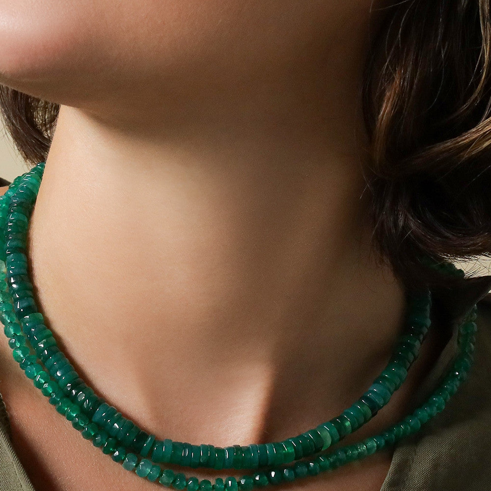 The Green Tranquillity Necklace by Amelia Roxanna Jewellery offers both style and a sense of harmony. The faceted green chalcedony beads are believed to promote emotional balance and positivity. This necklace is a beautiful and meaningful accessory for everyday wear, providing a touch of color and well-being.
