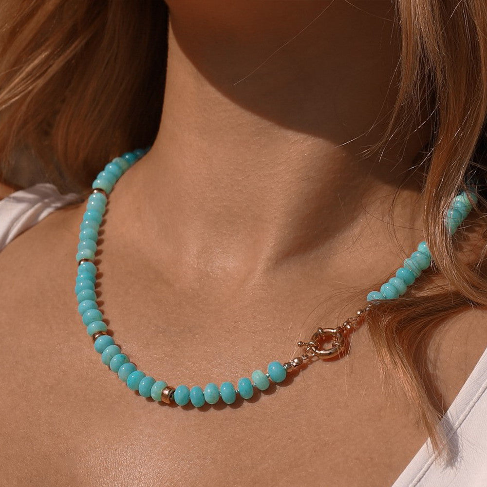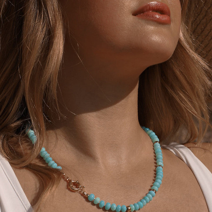 Aqua Blue Opal & Gold Necklace