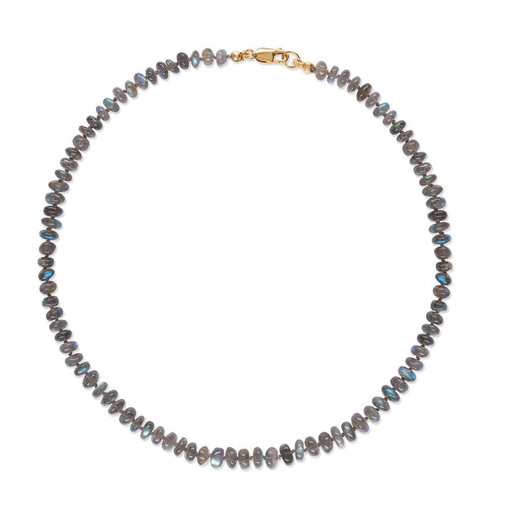This necklace is made of labradorite and is lovingly hand-knotted.