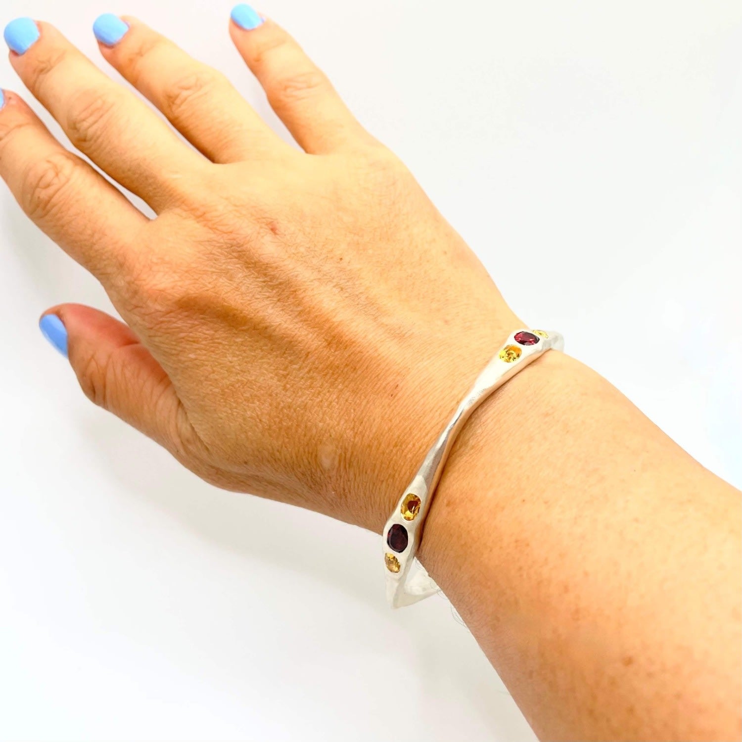 Bella -Twelve Gemstone Red Garnet, Orange Citrine Silver Bangle
