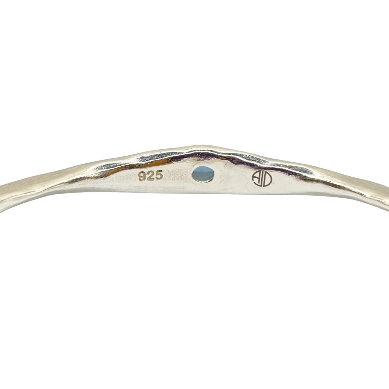 This Brooke - London Blue Topaz Four Stone Silver Bangle Bracelet by Amy Delson Jewelry is not a typical bangle. This sterling silver bracelet features London blue topaz gemstones and an undulating form, making it easy to stack with other bracelets. The blue topaz is believed to help with communication and confidence.