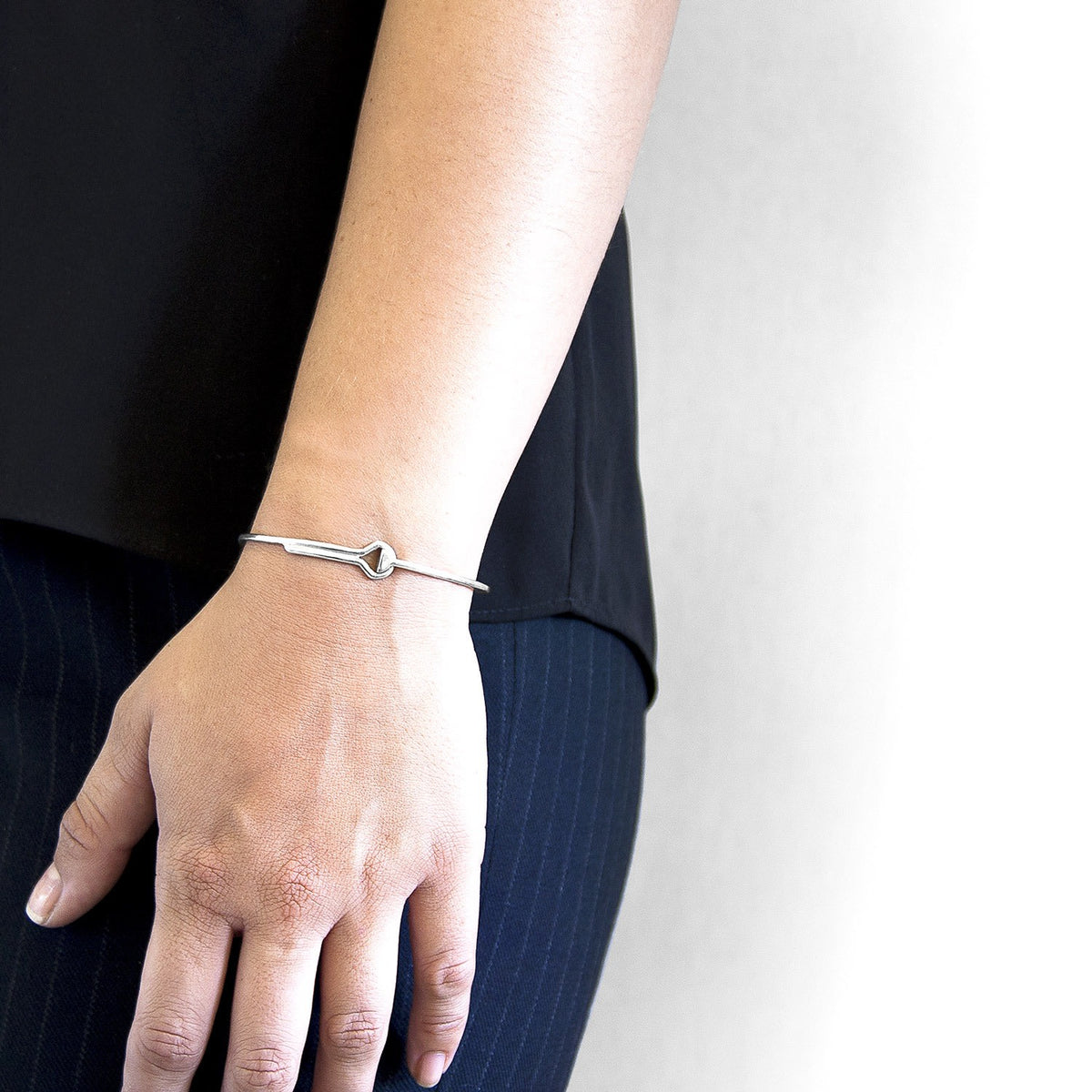This Sutton Gate Midi Geometric Silver Bangle by Anchor & Crew is a masterpiece of modern minimalism and British craftsmanship. The solid .925 sterling silver bangle is designed with a clean, geometric shape and a rounded, refined barrel. It is a perfect piece for the contemporary individual who appreciates a sleek, architectural aesthetic and a commitment to quality and timeless style.