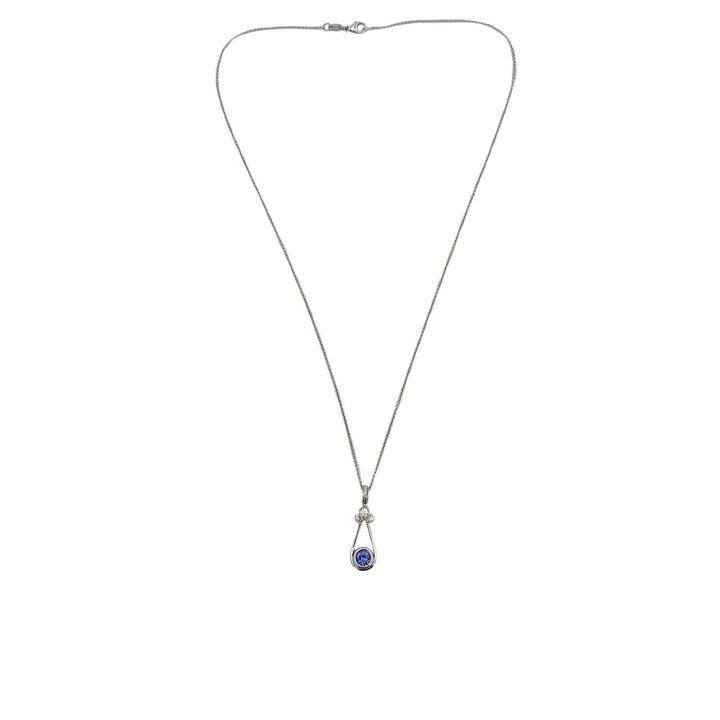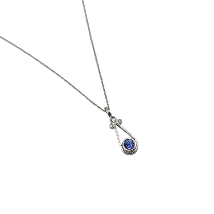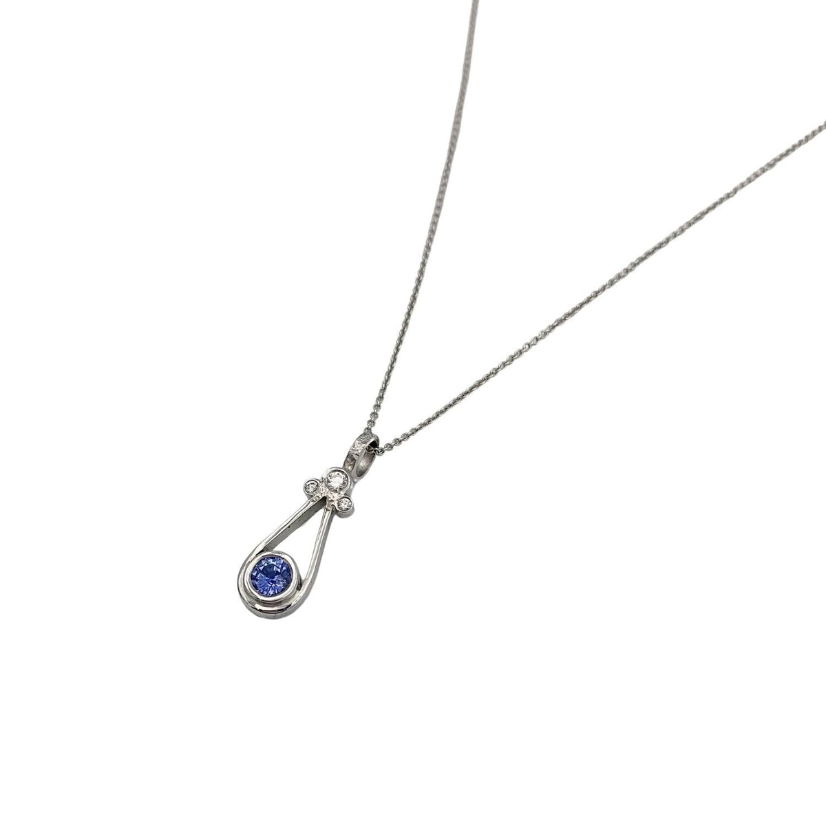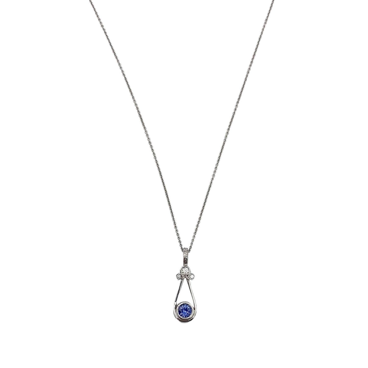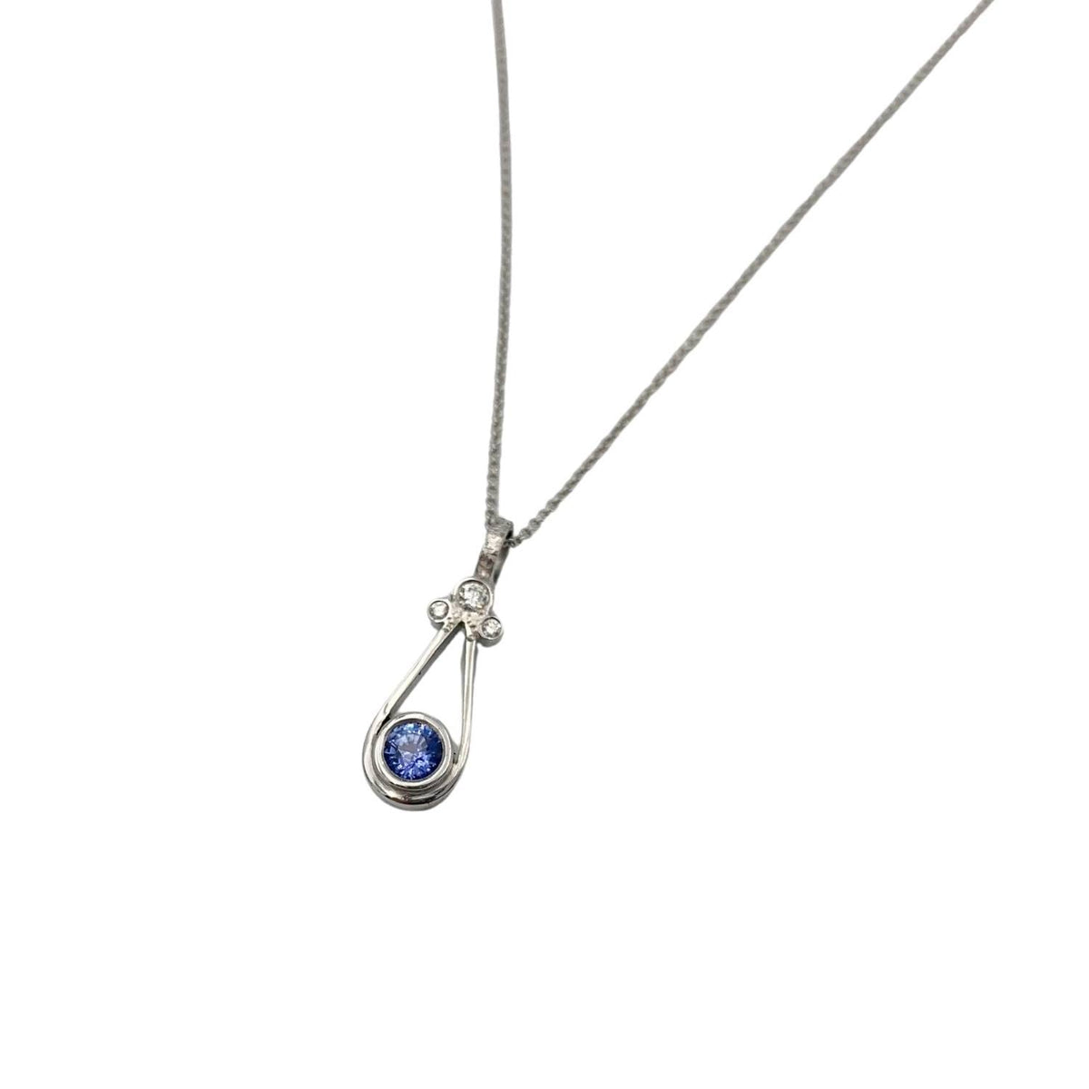 This fine necklace is crafted from 14kt white gold and features a fair trade Ceylon sapphire and diamonds. It comes with a 14kt white gold necklace that is 42cm long.