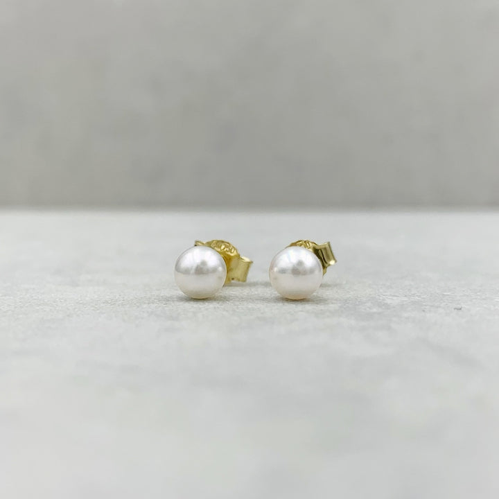 These fine earrings are crafted from 18kt gold and feature high-quality 5mm Akoya-Pearls.