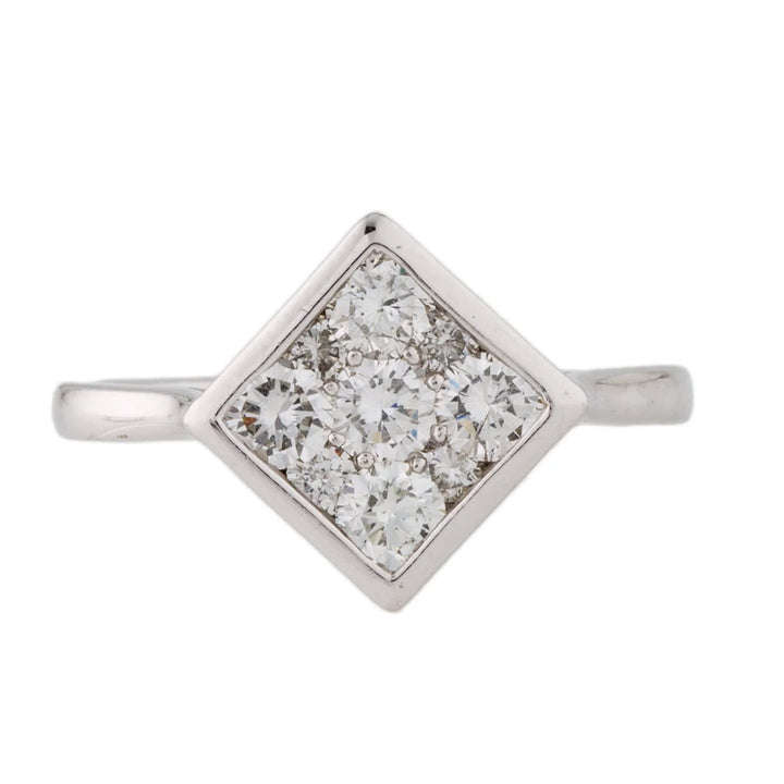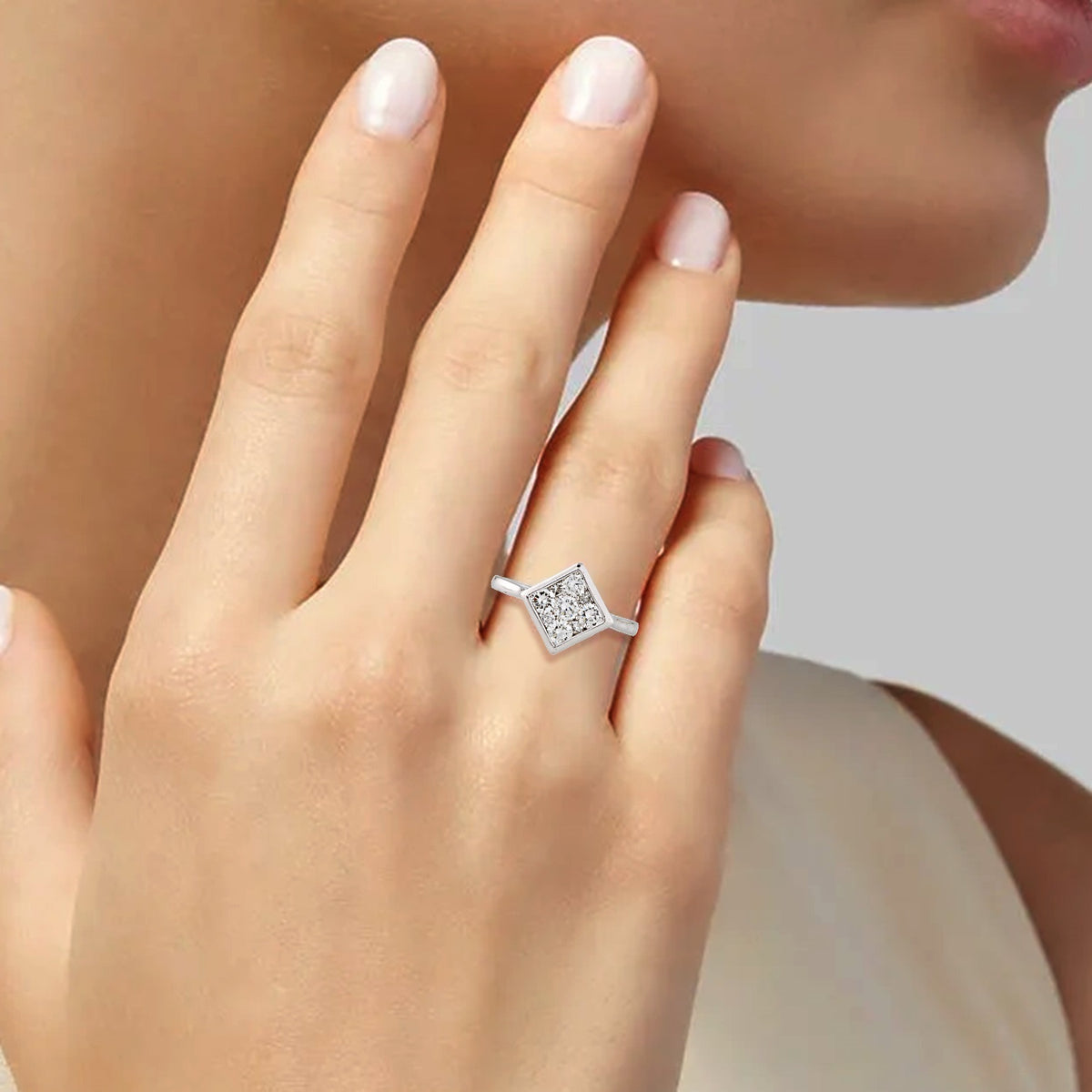 The 18K White Gold Prong-Set Diamond Square Ring by Artisan is a modern and elegant accessory. Handmade in 18k white gold, this ring features a square design with 1ct of prong-set diamonds. Its unique design and premium materials give it a natural glow, making it a distinctive piece perfect for stacking or wearing alone.