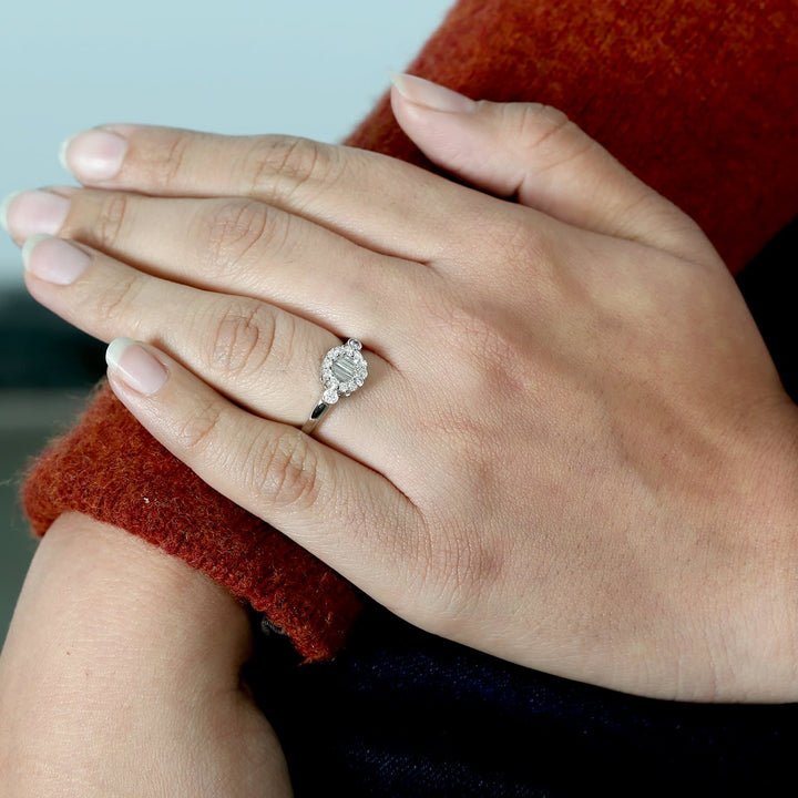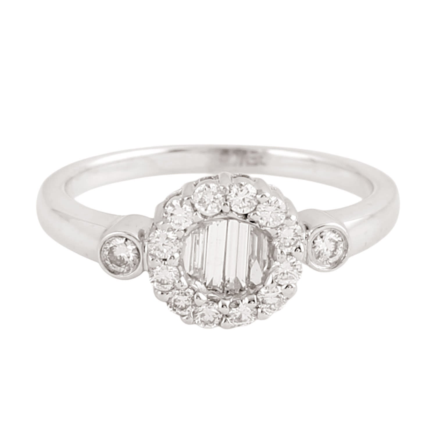 18K White Gold With Baguette Natural Diamond Cocktail Ring
