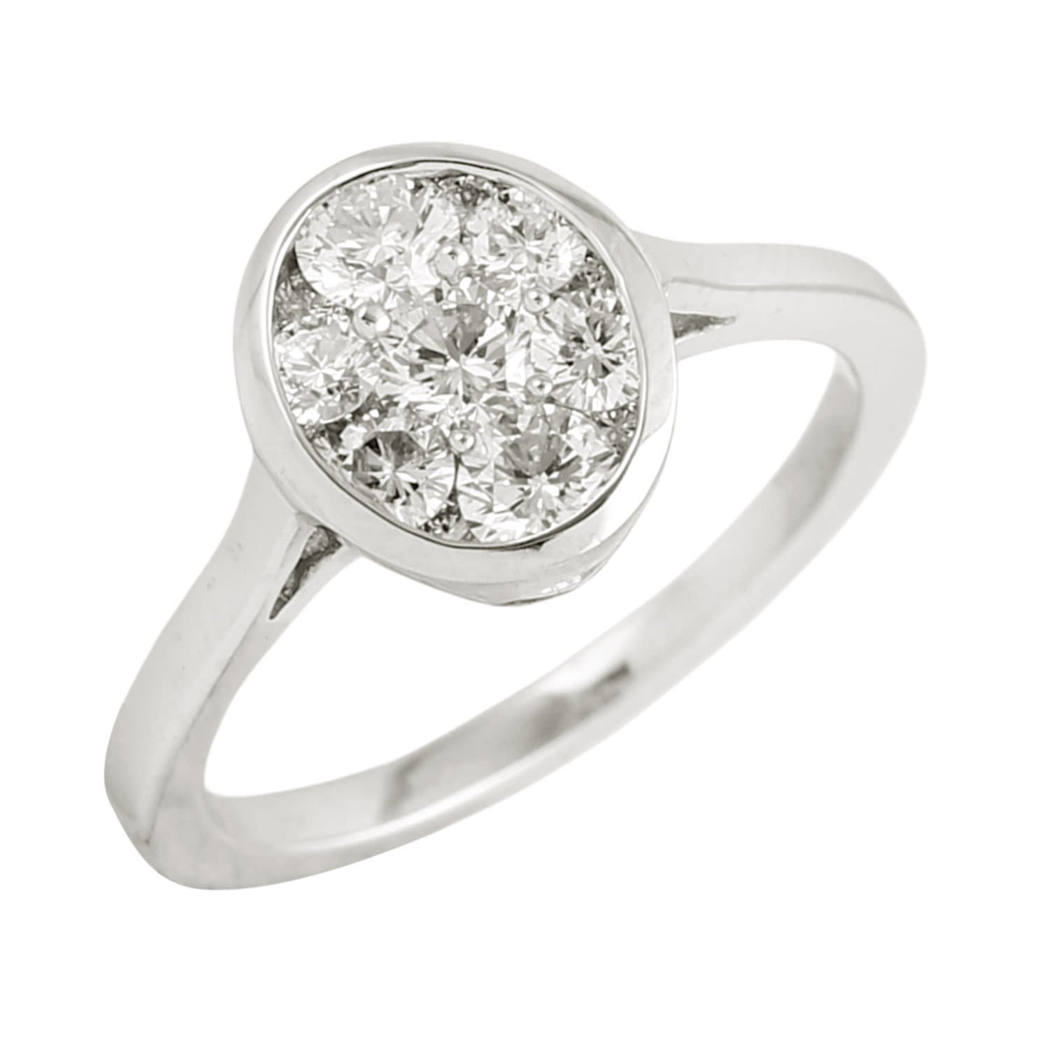 This handmade cocktail ring is crafted from 18k white gold and features 0.95 carats of natural diamonds.