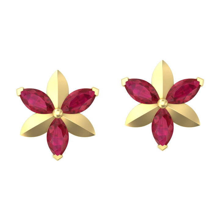 14K Yellow Gold Marquise Cut Ruby Stud Earrings