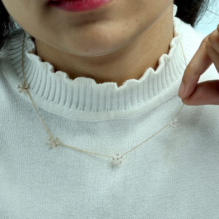 Rose Cut Diamond Beaded Princess Necklace In Yellow Gold