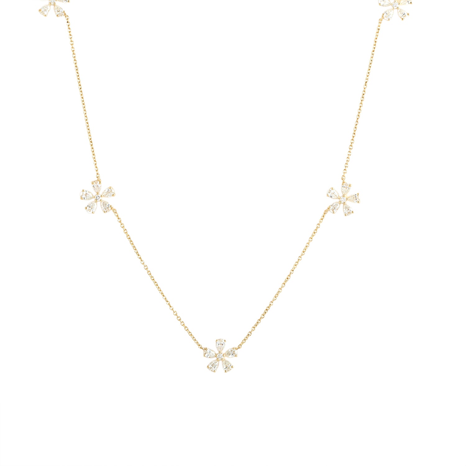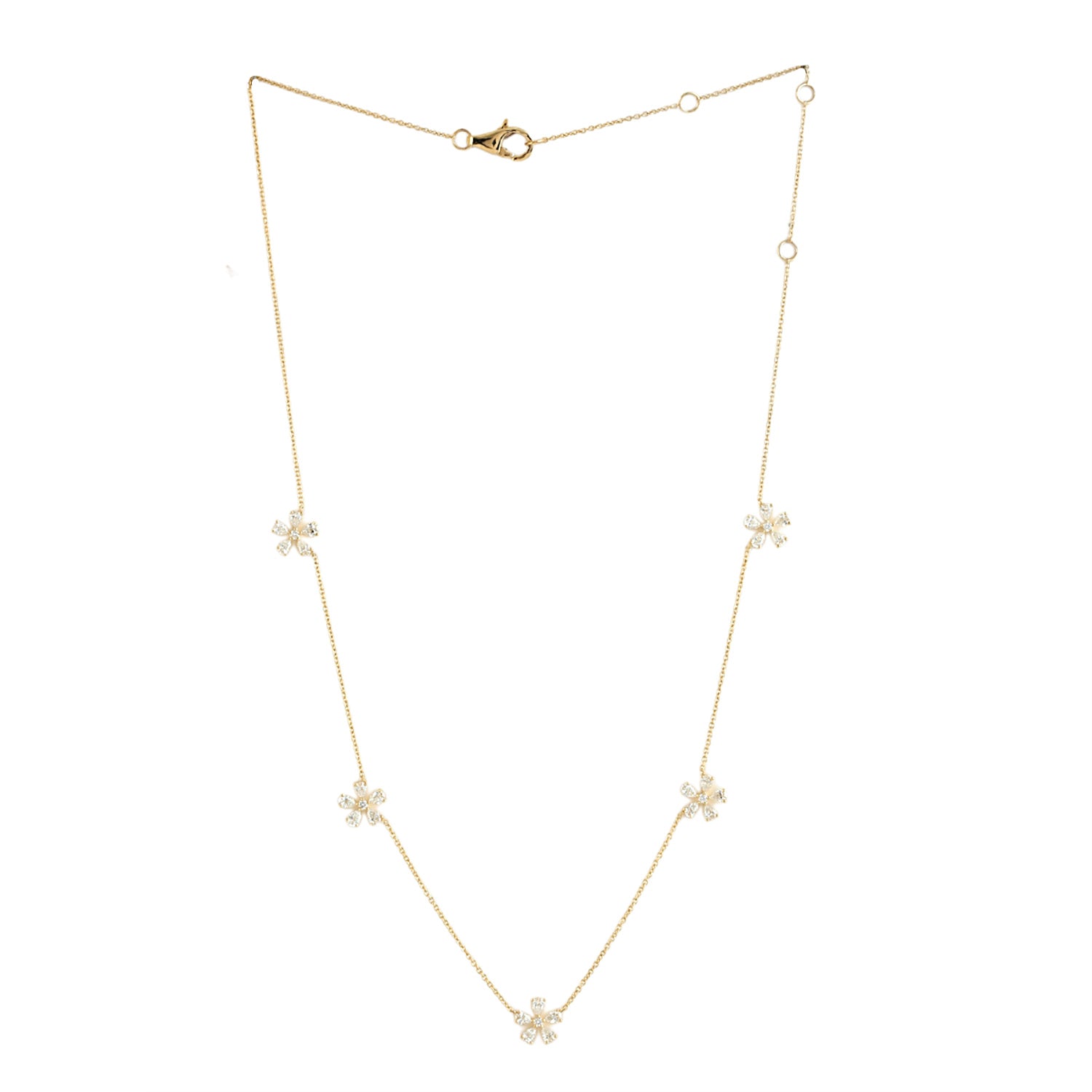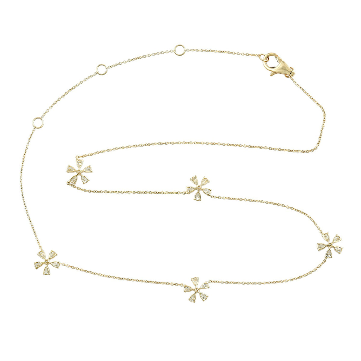 This handmade necklace is crafted from 14k yellow gold and features 1.43 carats of natural rose-cut diamonds.