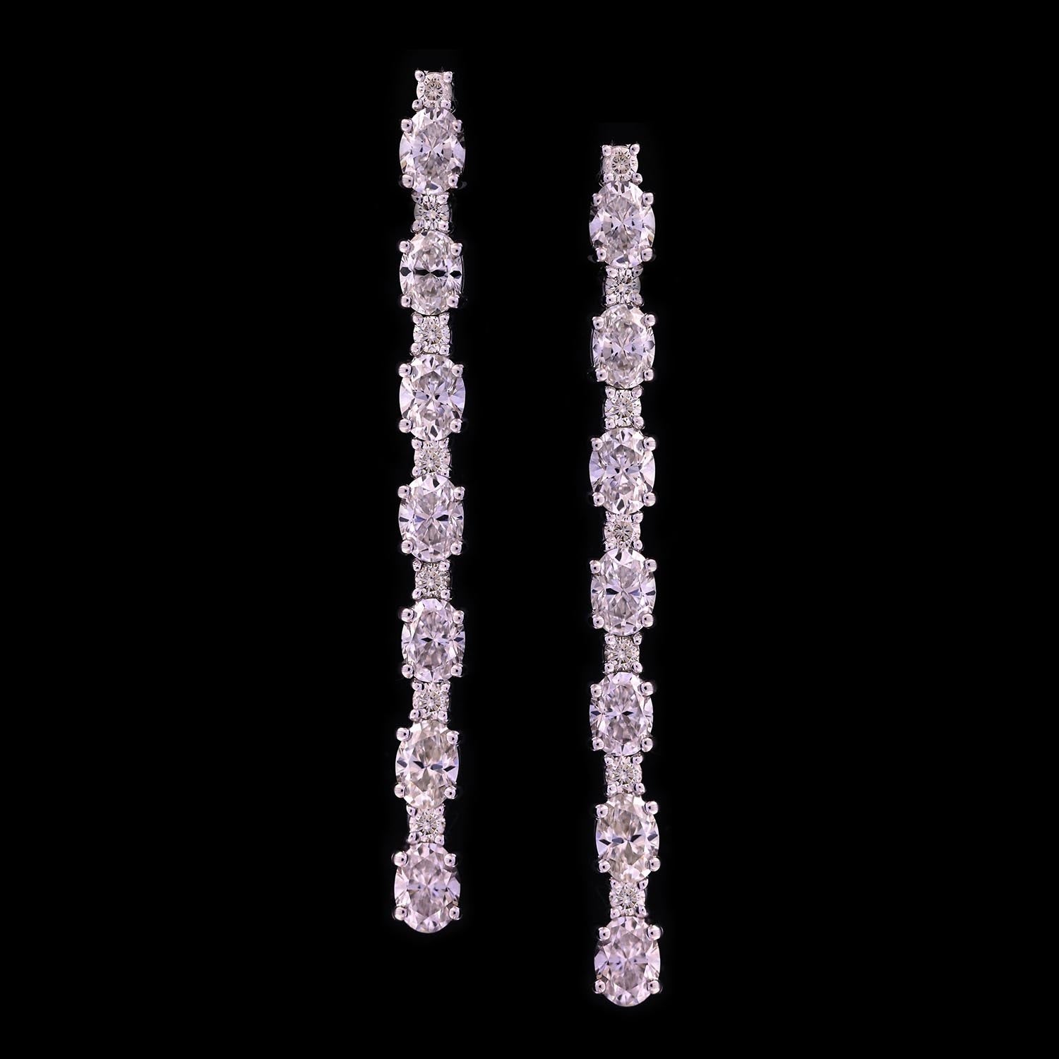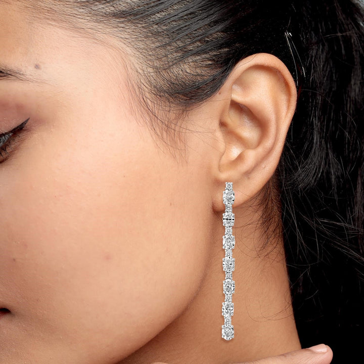 Oval Cut Diamond Dangle Earrings In White Gold