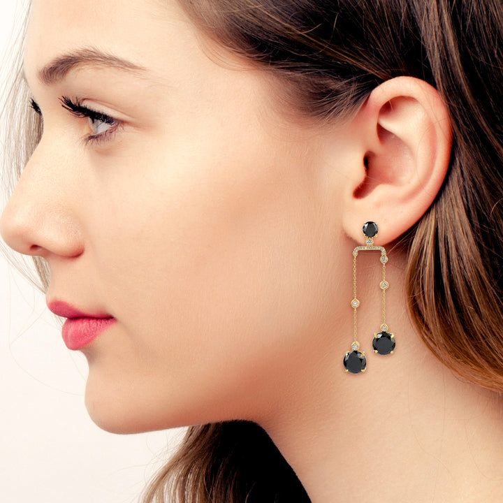 These earrings are handmade from 18-karat yellow gold with a total diamond weight of 13.94 carats.