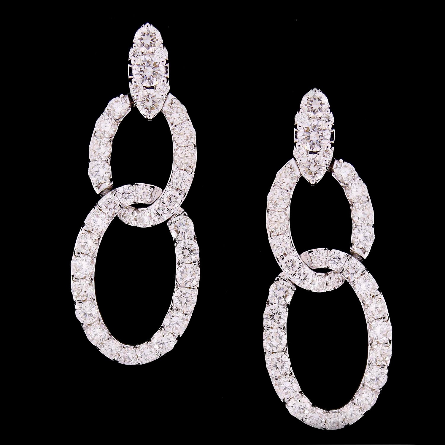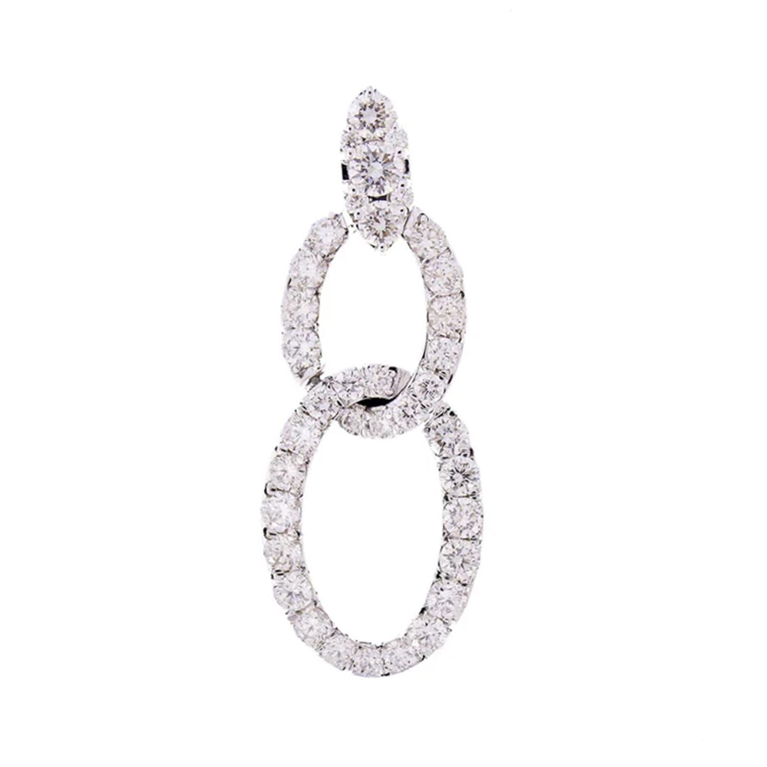 These earrings are handmade from 18-karat white gold with a total diamond weight of 2.42 carats.