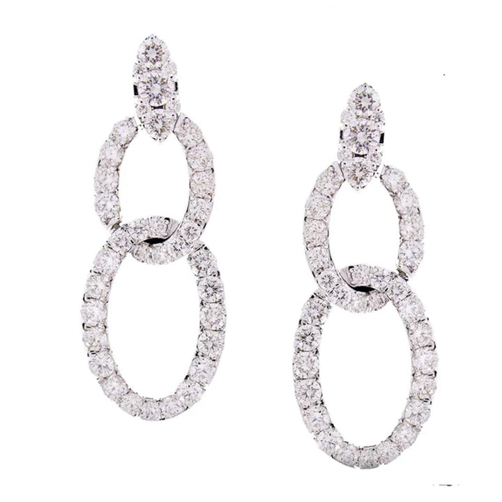 18K White Gold Round Dangle Earrings Pave Diamond