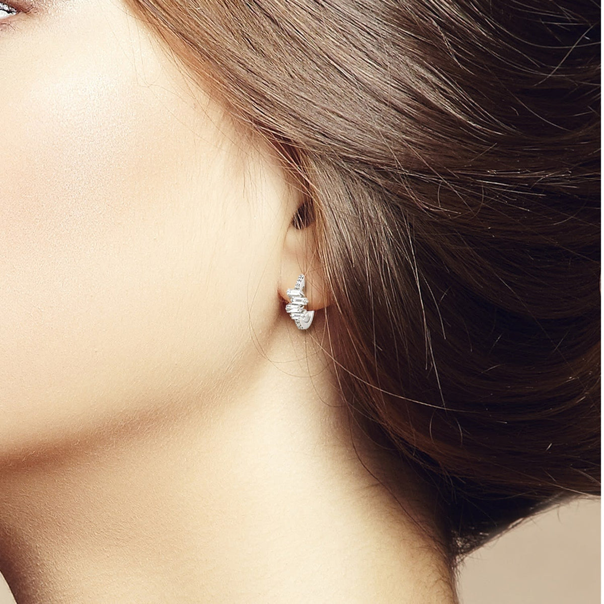 Baguette Diamond Huggie Earrings In 18K White Gold