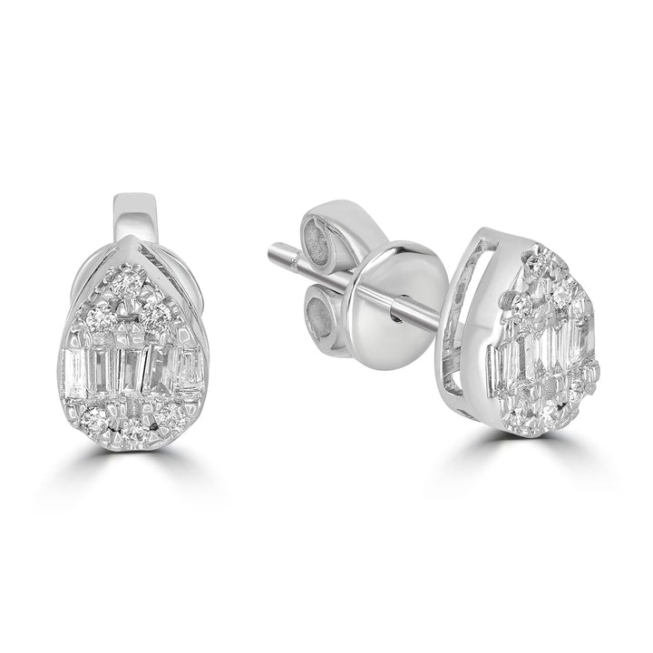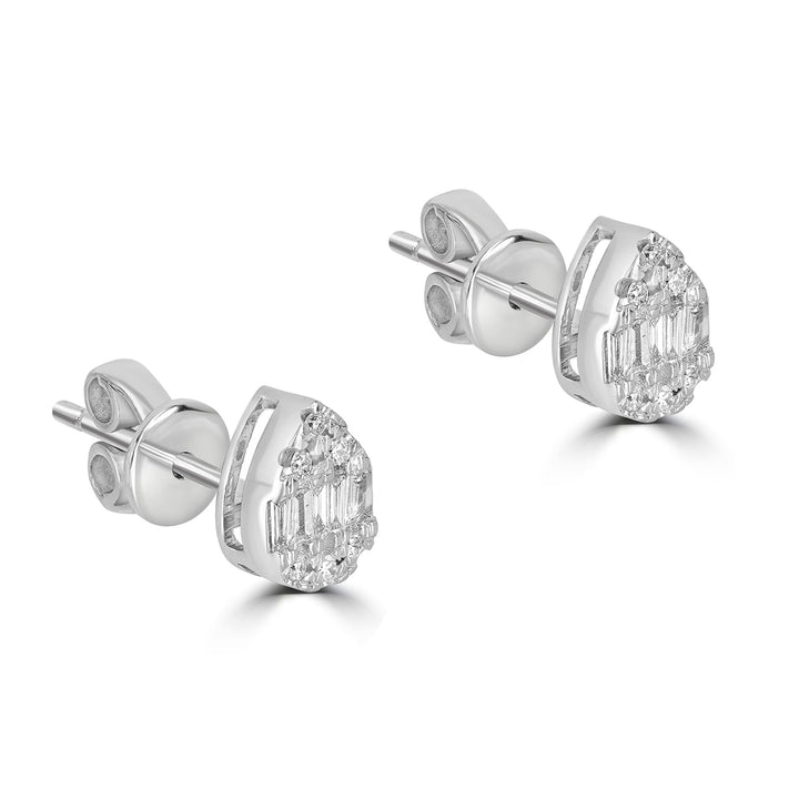18K White Gold Baguette Cut Diamond Pear Stud Earrings