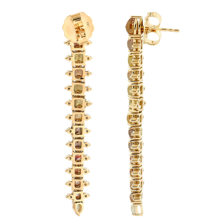 These Natural Ice Diamond Dangle Earrings by Artisan are a dazzling testament to premium craftsmanship and modern elegance. Handmade from 18k yellow gold, the earrings are set with a stunning total of 8.14 carats of ice diamonds, which are capable of reflecting light to produce a natural glow. Their captivating design and exceptional brilliance make them a luxurious accessory for any occasion.
