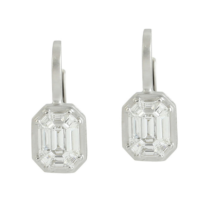 These Natural Diamond Illusion Set Earrings by Artisan are a breathtaking piece of artistry. Handmade from solid 18k white gold, these dangle earrings feature a unique illusion setting that enhances the brilliance of the diamonds, creating a stunning glow. This sophisticated and timeless design is perfect for the woman who appreciates meticulous craftsmanship and a piece that truly stands out.