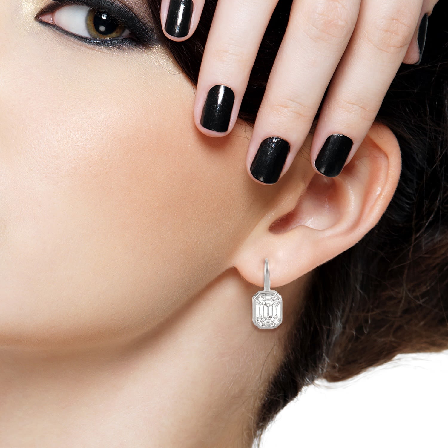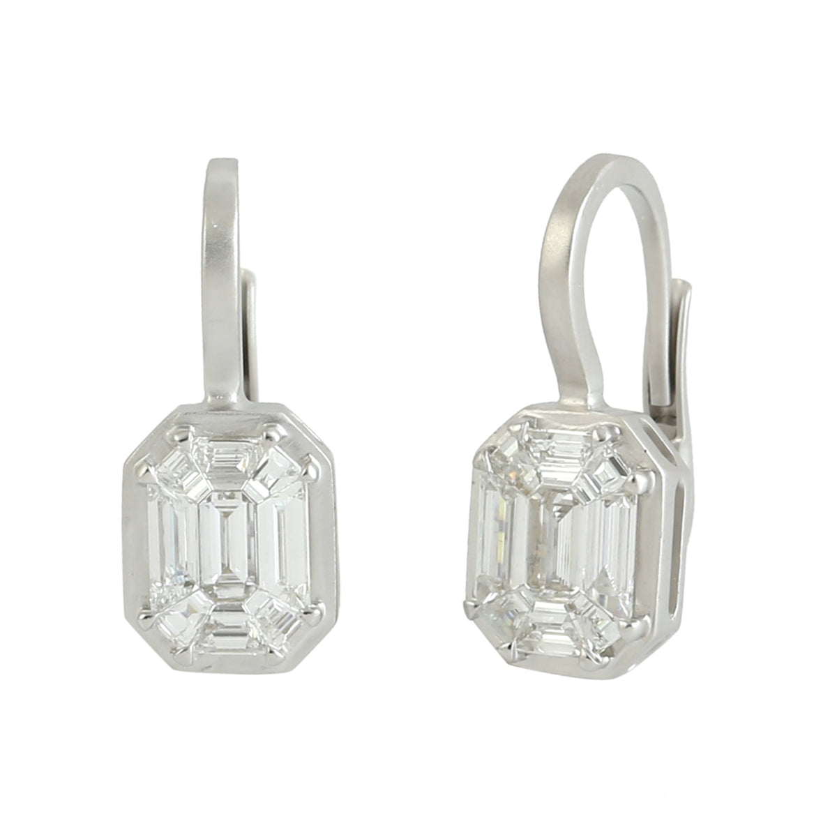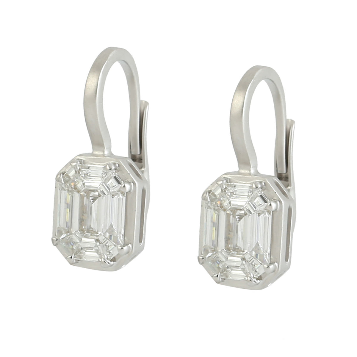 Natural Diamond Illusion Set Earrings In Solid White Gold By Artisan