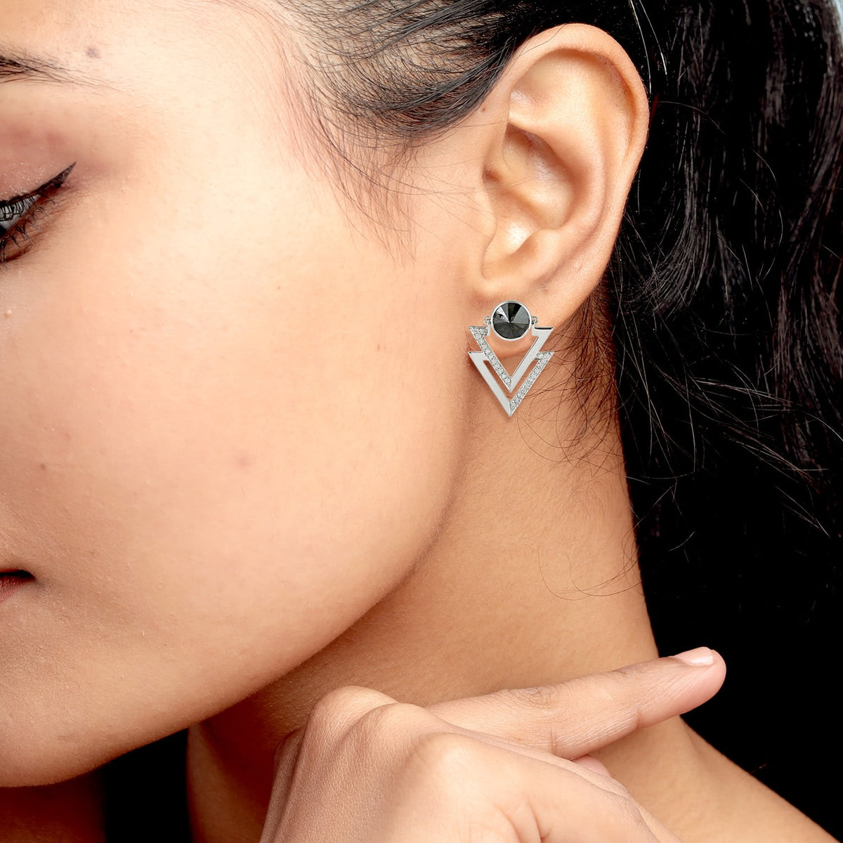 Black & White Diamond Dangle Earrings In 18K White Gold