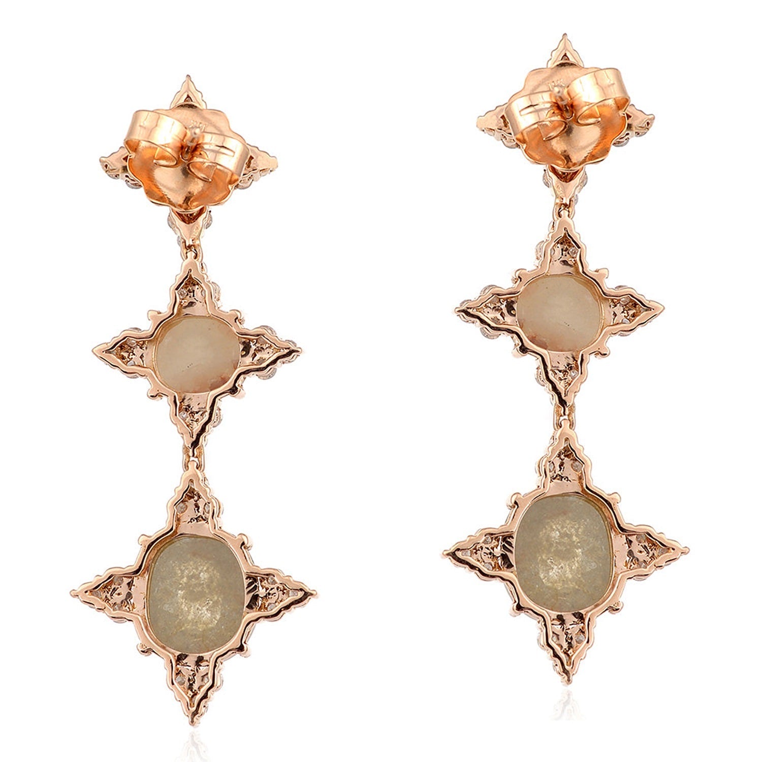 18K Rose Gold Dangle Earrings Prong Natural Ice Diamond