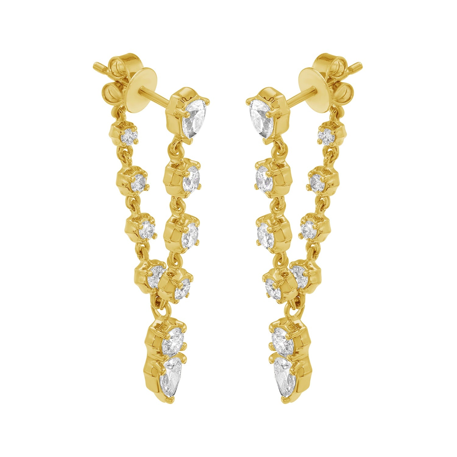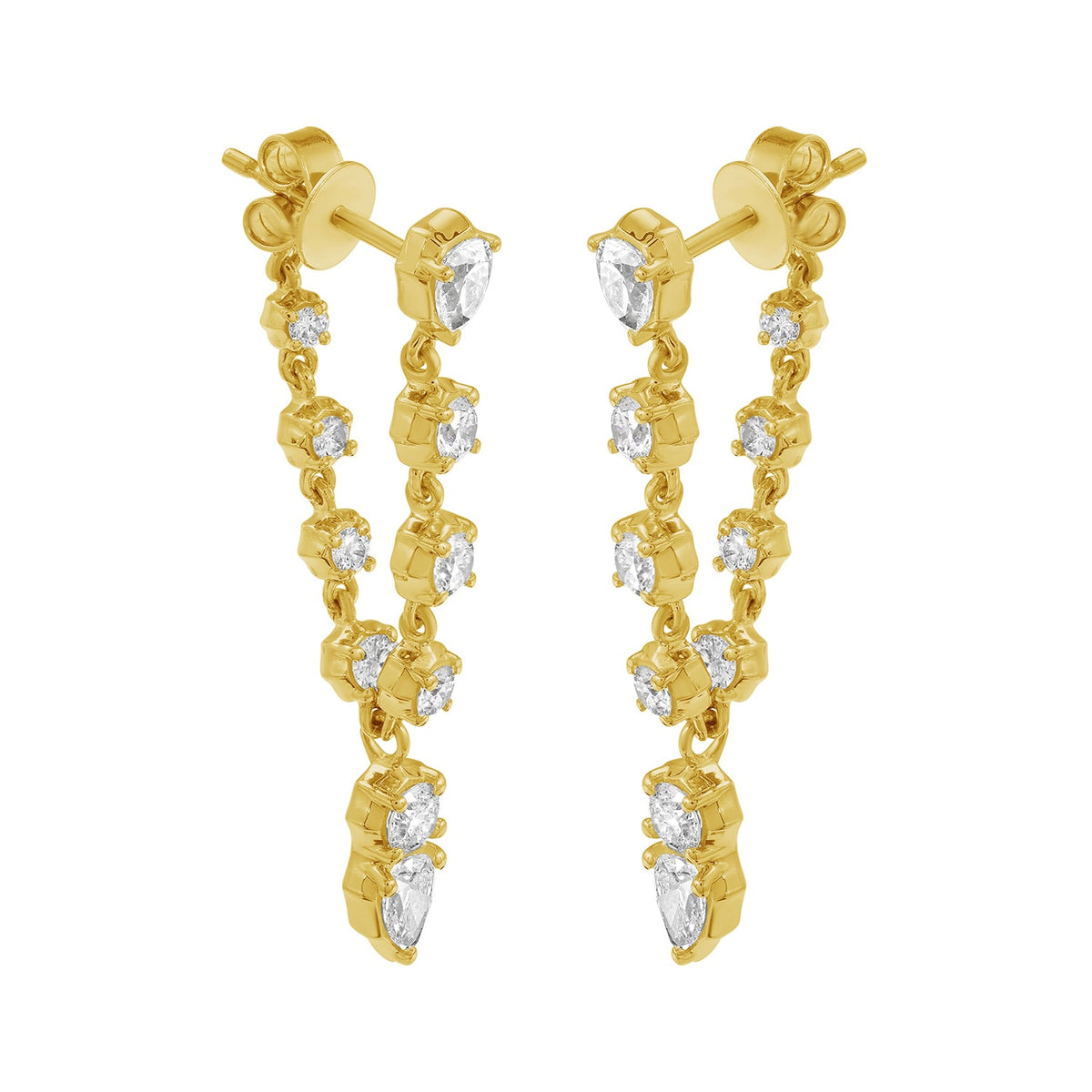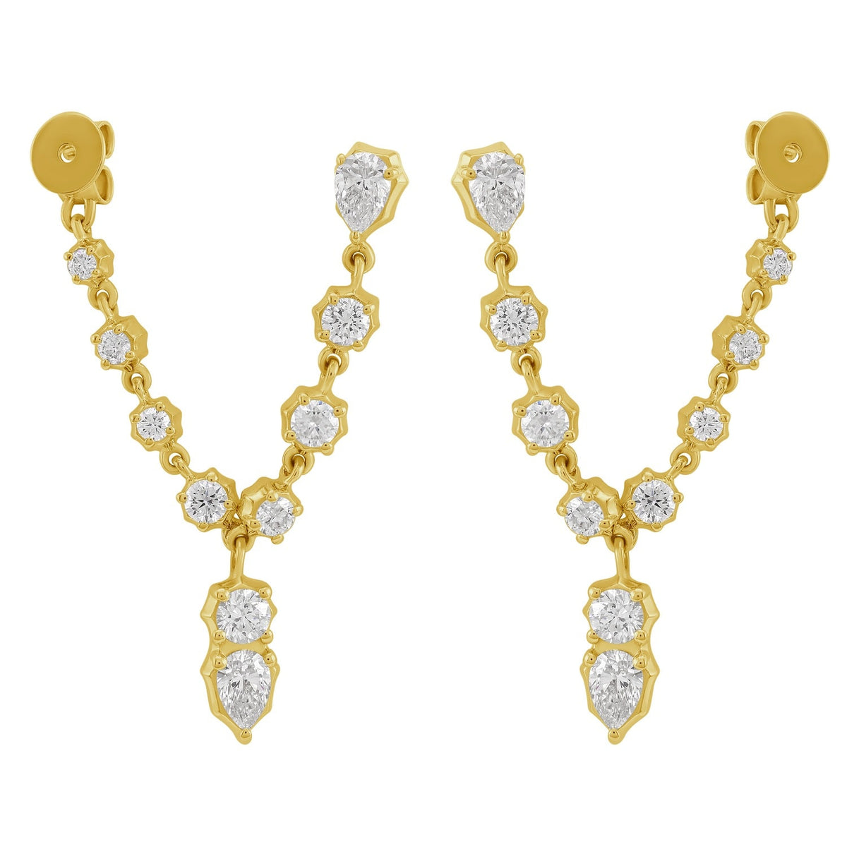 Natural Diamond Prong Chandelier Earrings In Yellow Gold