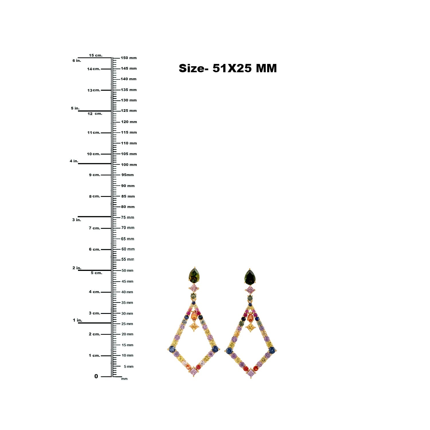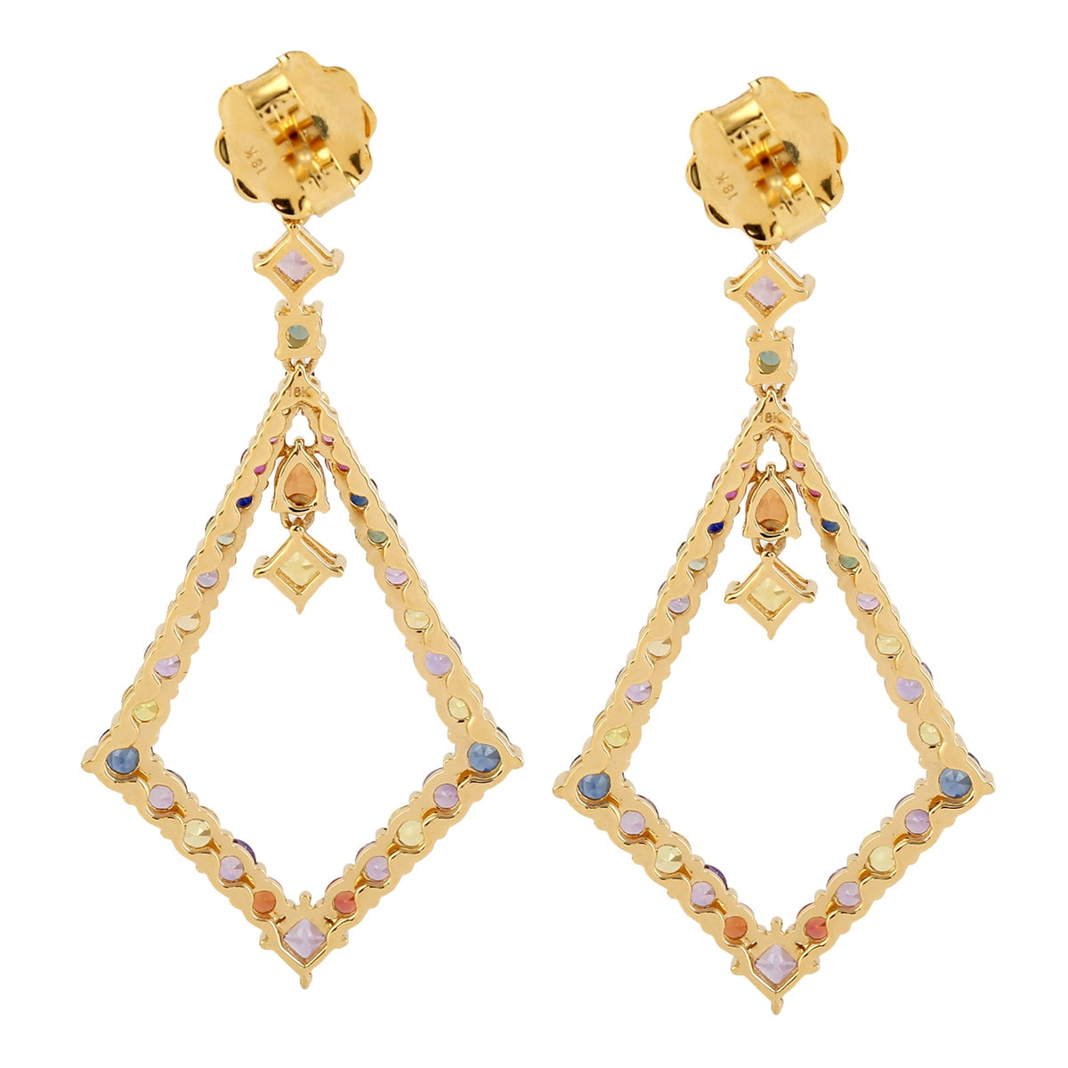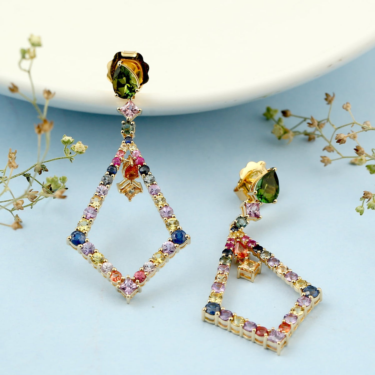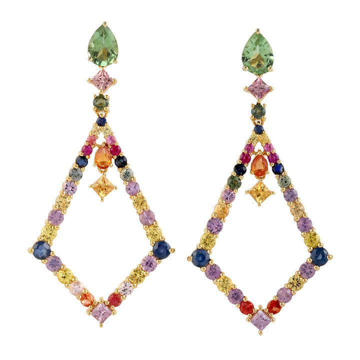 Multicolor Sapphire & Tourmaline Gemstone In Gold Dangle Earrings