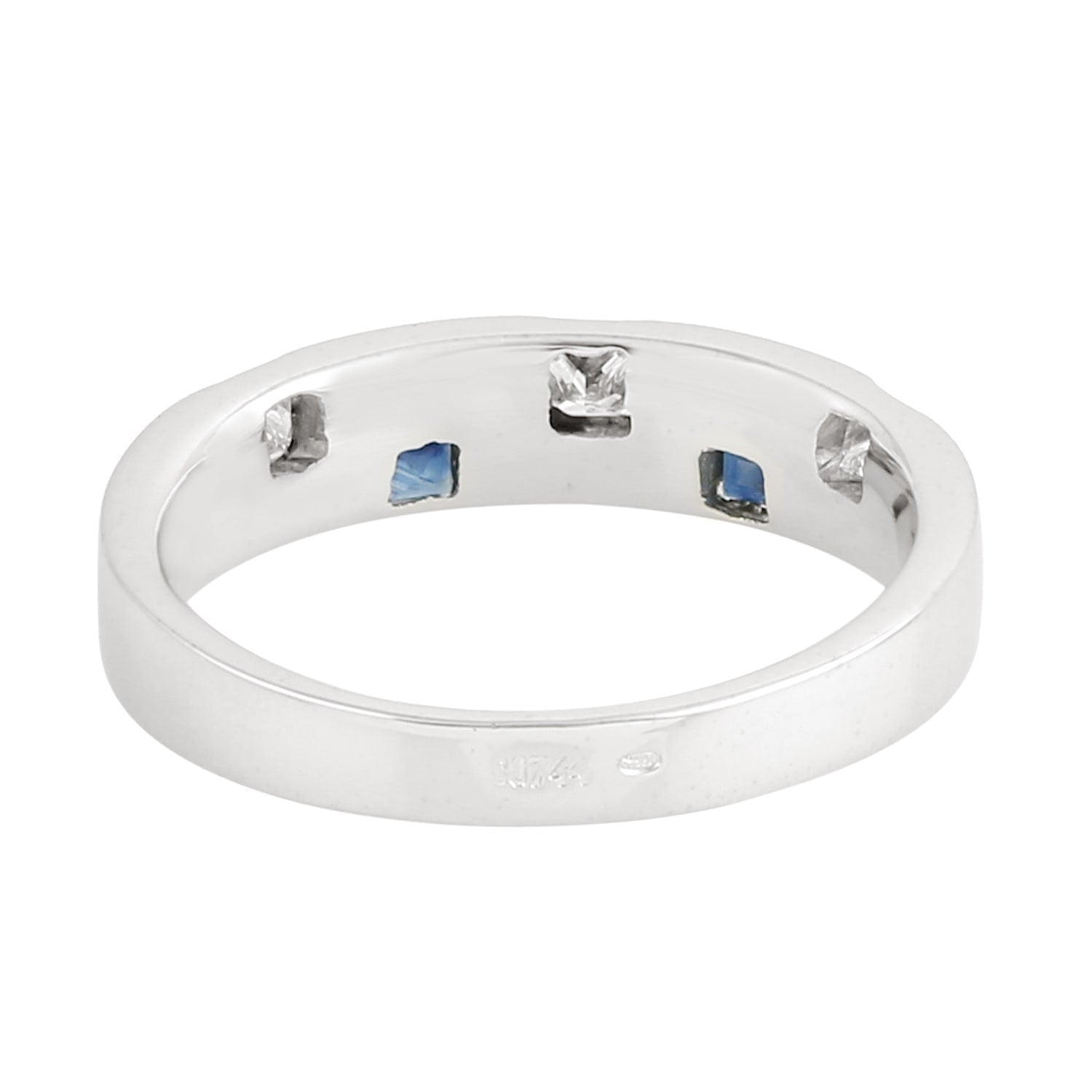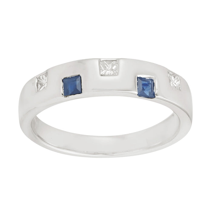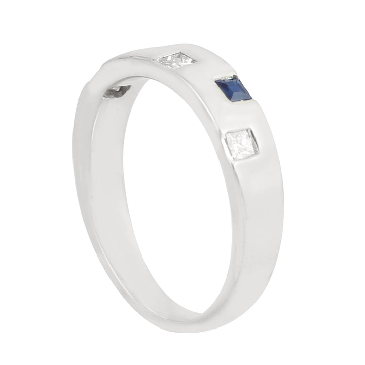 18K White Gold Blue Sapphire Gemstone & Diamond Band Ring