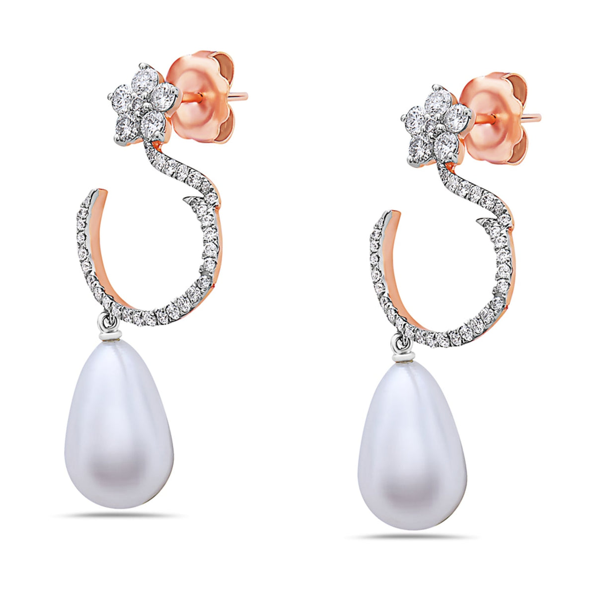 Natural Diamond & Pearl Dangle Earrings In 18K Rose Gold