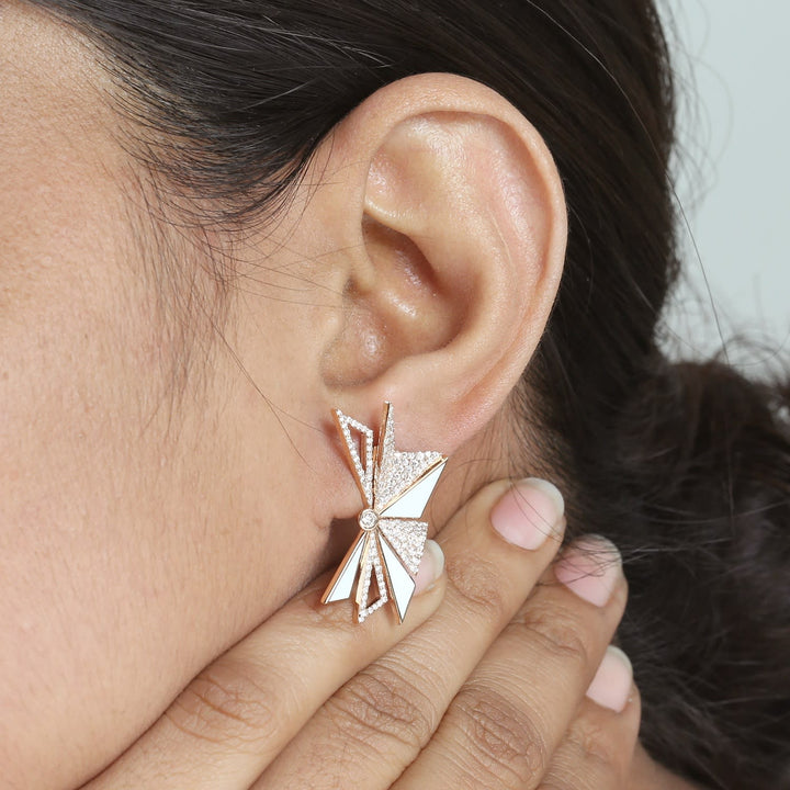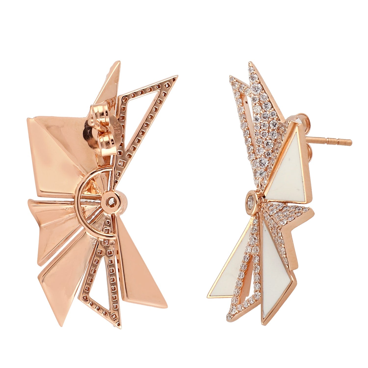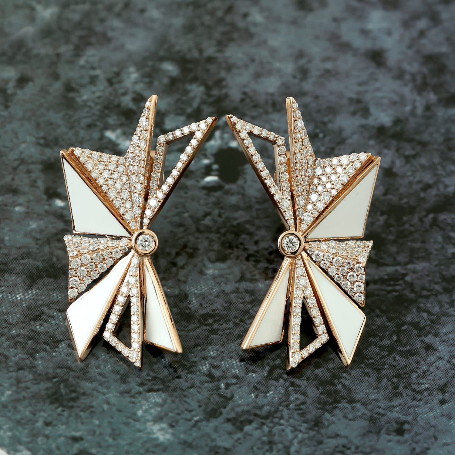 18K Rose Gold Enamel Designer Dangle Earrings With Micro Pave Diamonds