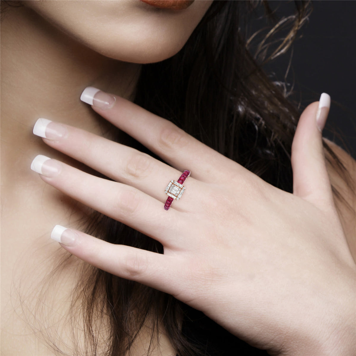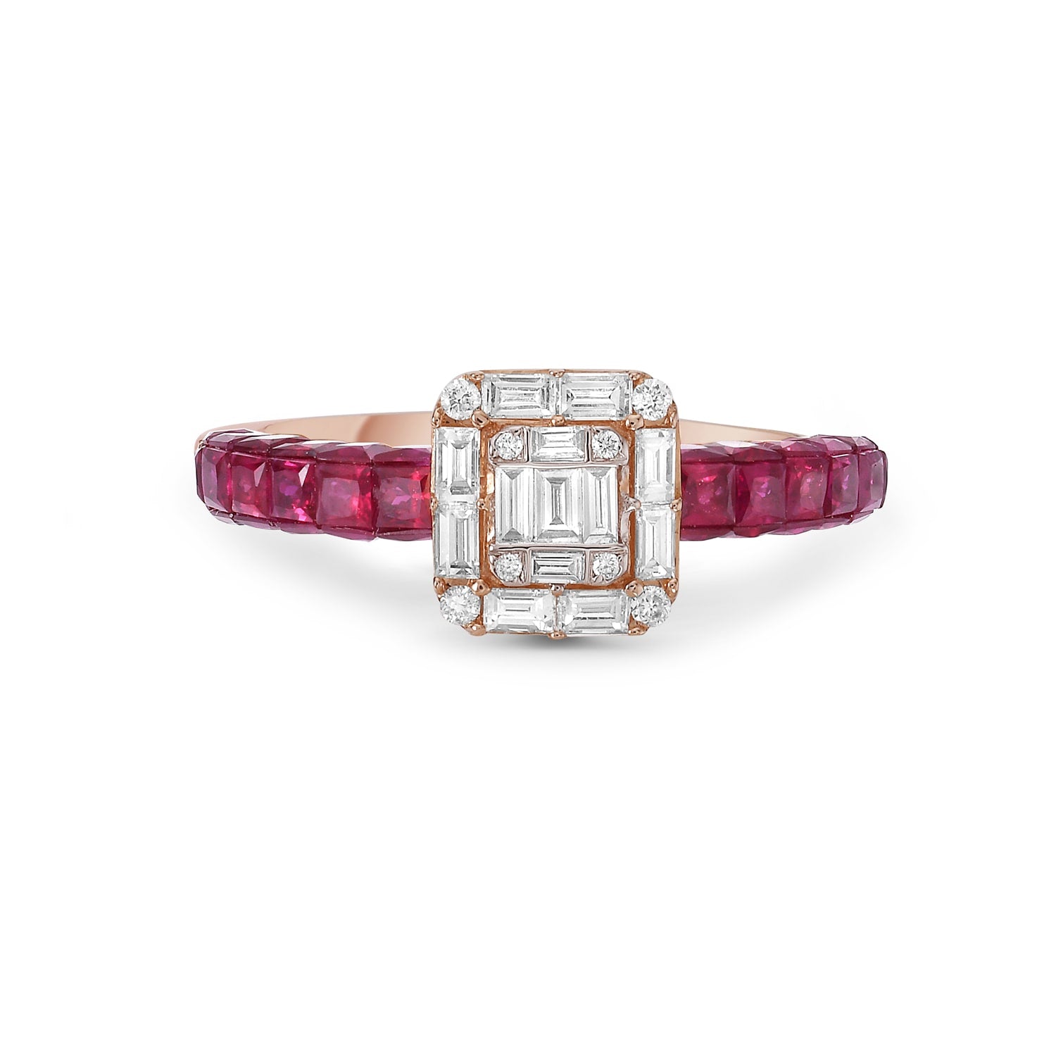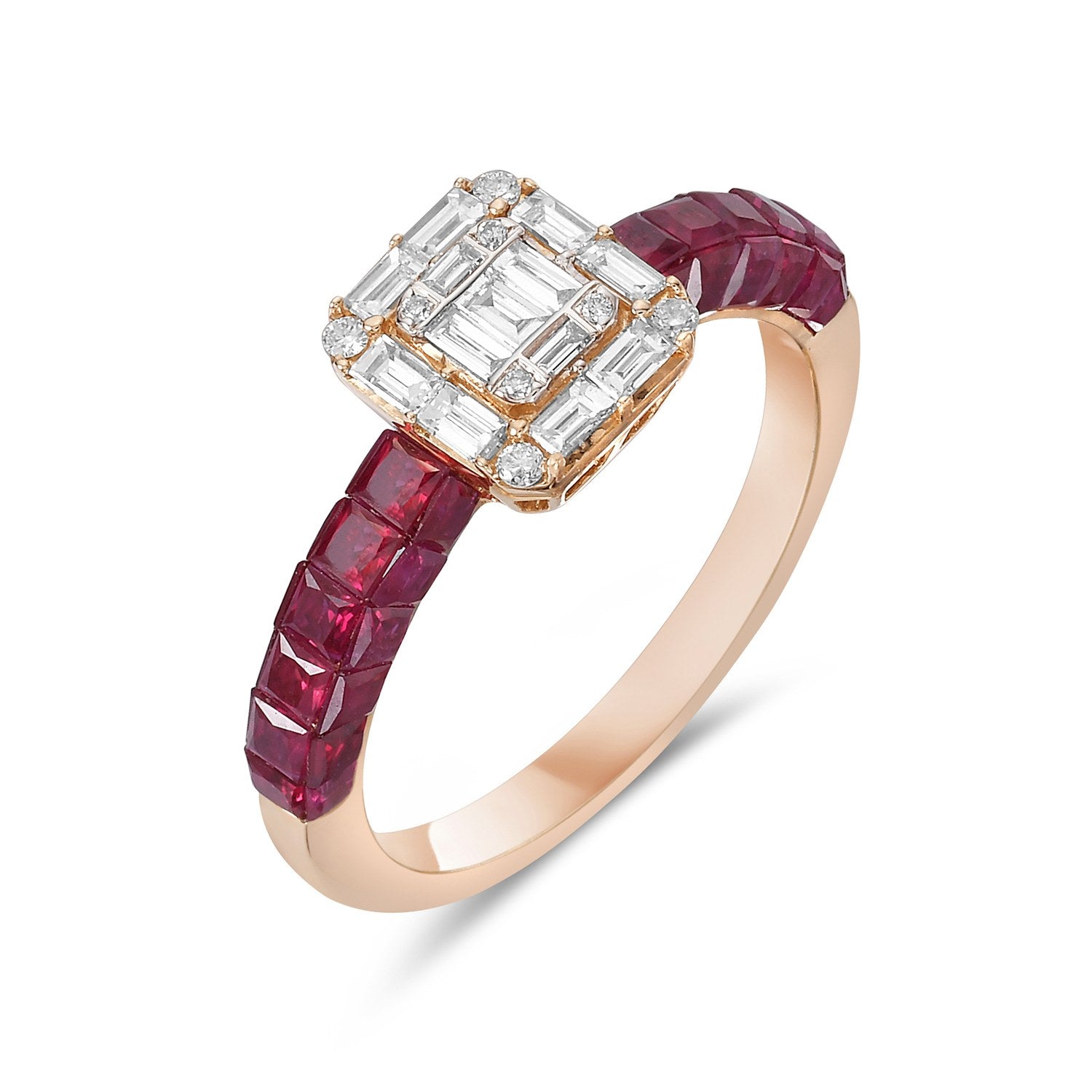 18K Rose Gold Baguette Diamond Channel Set Ruby Cocktail Ring