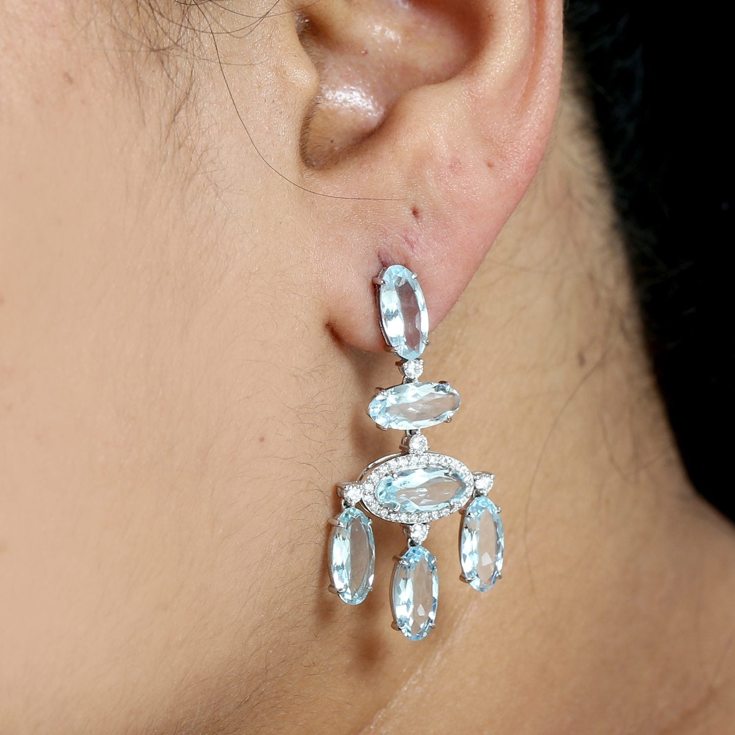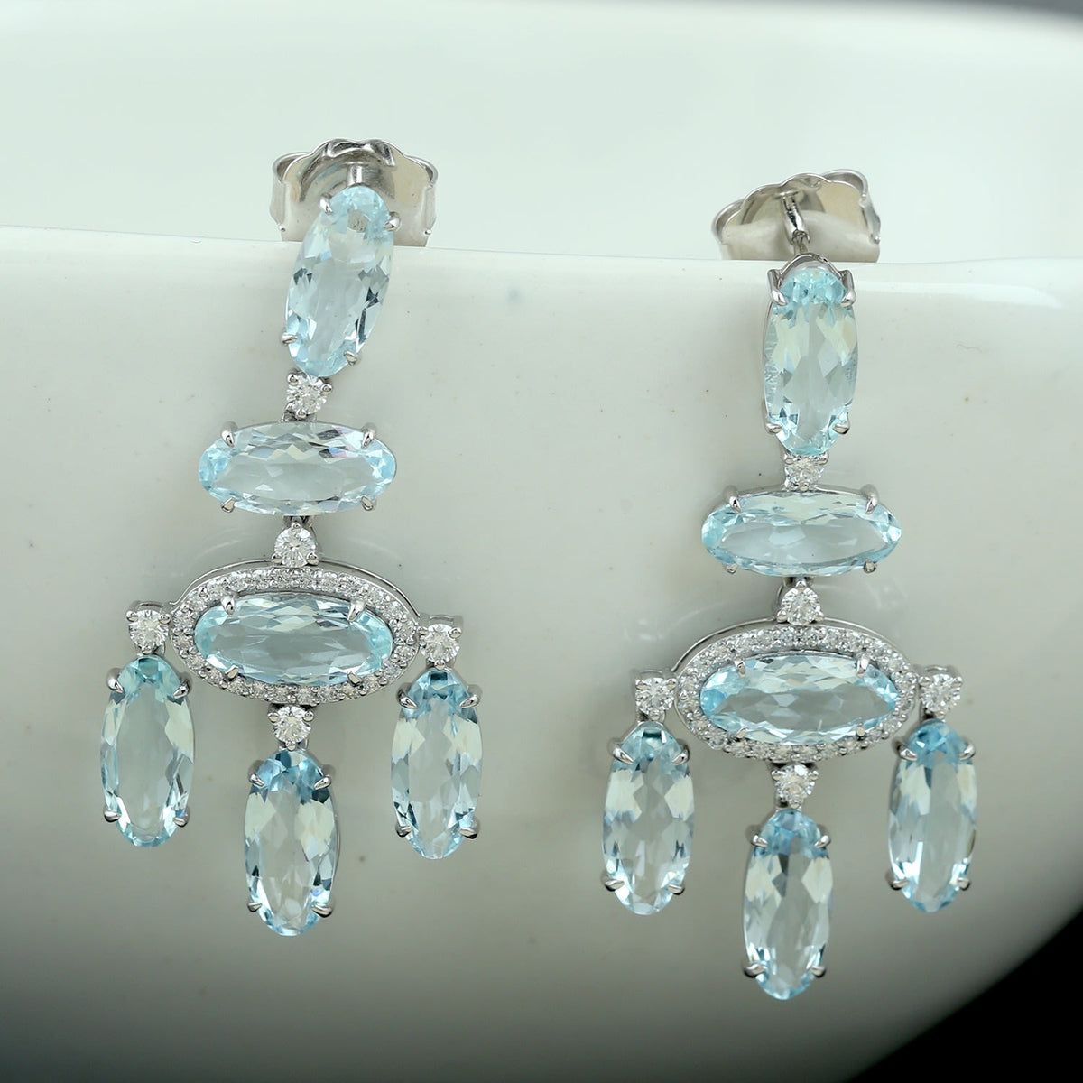 Natural Aquamarine & Diamond Chandelier Earrings In White Gold