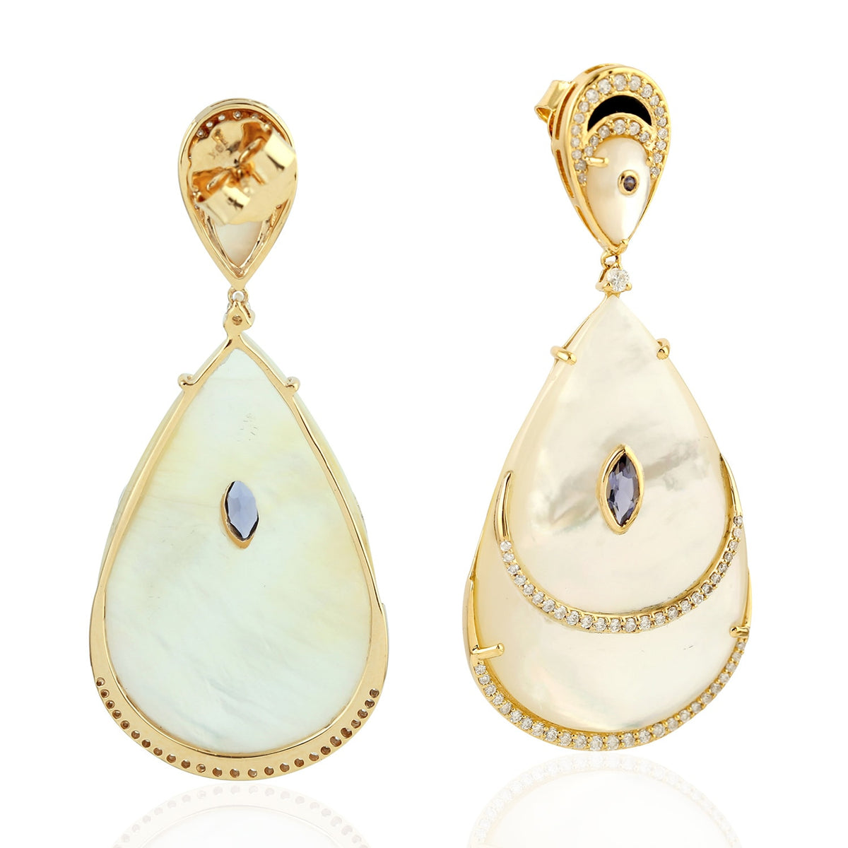 Mop & Iolite Gemstone Pave Diamond Dangle Earrings In Gold