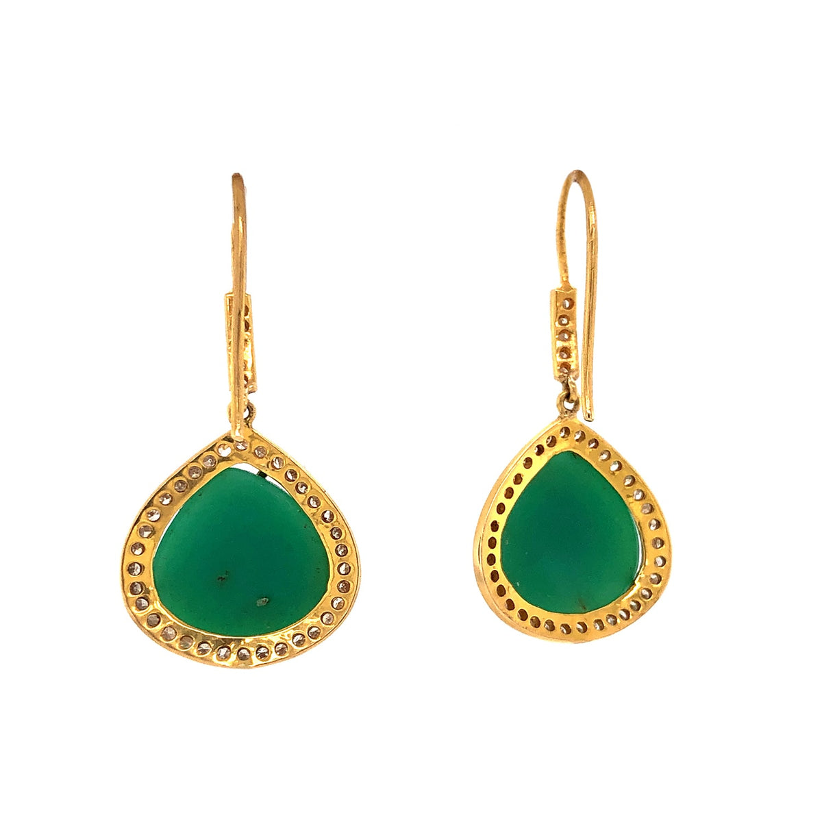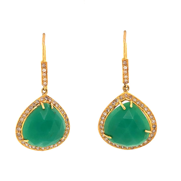 Pear Cut Chrysoprase & Diamond Ear Hook Earrings In Gold