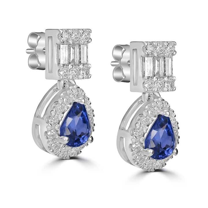 Blue Sapphire & Diamond Drop Dangle Earrings In White Gold